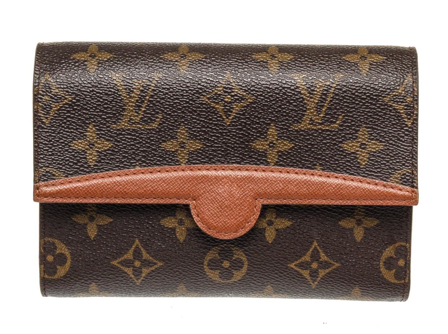 Louis Vuitton Brown Monogram Canvas Arche Waist Bag with monogram canvas, gold-tone hardware, trim tan vachetta leather and snap closure.