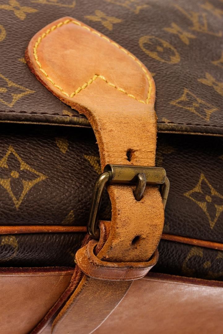 Louis Vuitton Brown Monogram Canvas Cartouchiere GM Messenger Bag. All available information is listed in the description and shown in the photos. Louis Vuitton Brown Monogram Canvas Cartouchiere GM Messenger Bag with brown coated canvas, brass hardware, leather trim, single adjustable shoulder strap, leather trim embellishment, leather lining, buckle closure at front. Height: 9.25" Width: 9.75" Depth: 3.25", Shoulder Strap Drop: 18.5-20.75" / 23.49 x 24.76 x 8.25 Cm
