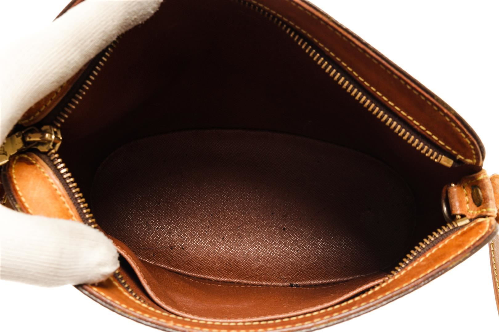 One Louis Vuitton Brown Monogram Canvas Drouot Shoulder Bag. Item is sold AS-IS. All available information is listed in the description and shown in the photo. louis vuitton brown monogram canvas drouot shoulder bag with gold-tone hardware, full lining, internal logo stamp, adjustable shoulder strap, zip closure. Depth 10 cm, Height 22 cm, Width 24 cm / 3.93" x 8.66" x 9.44" Inches