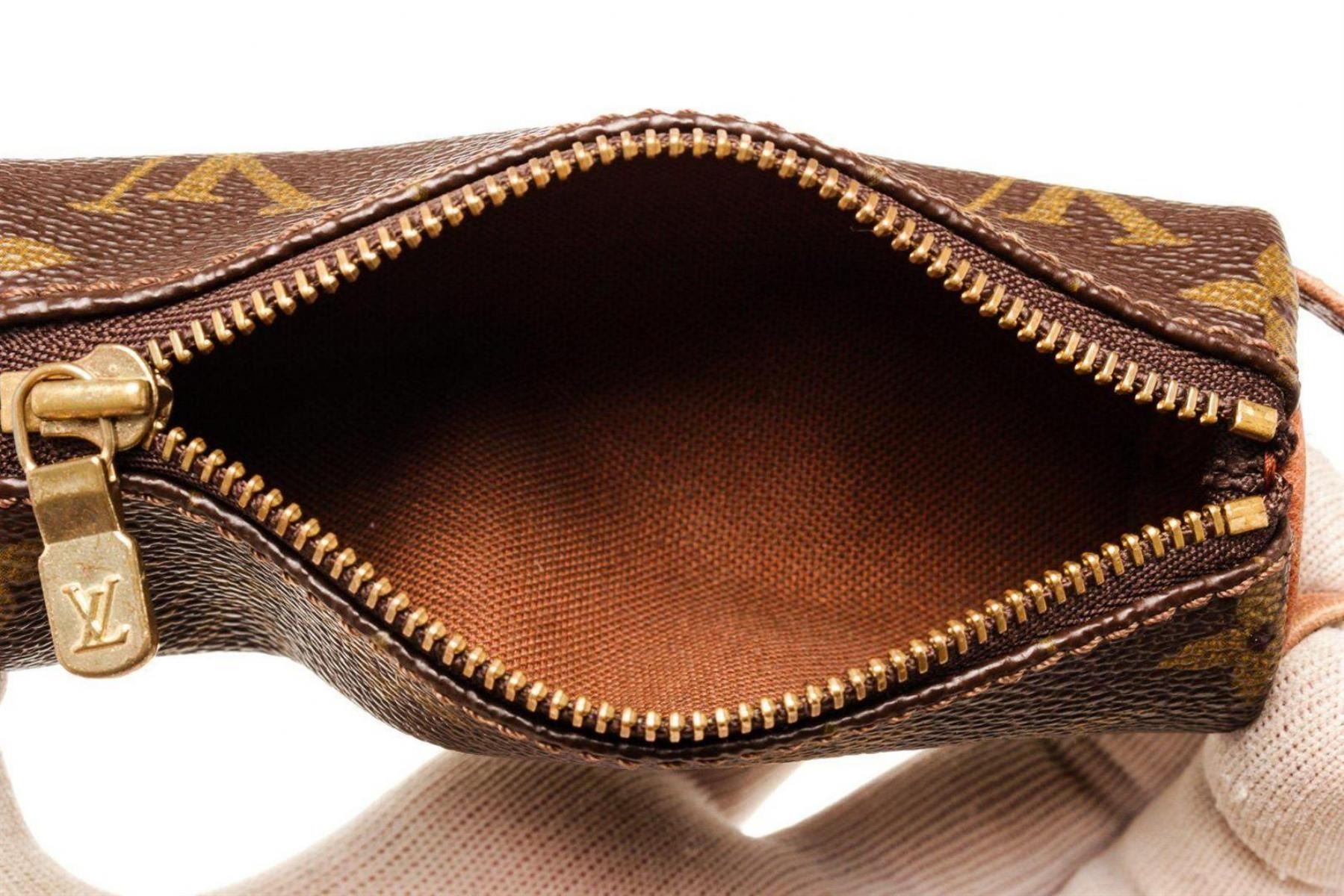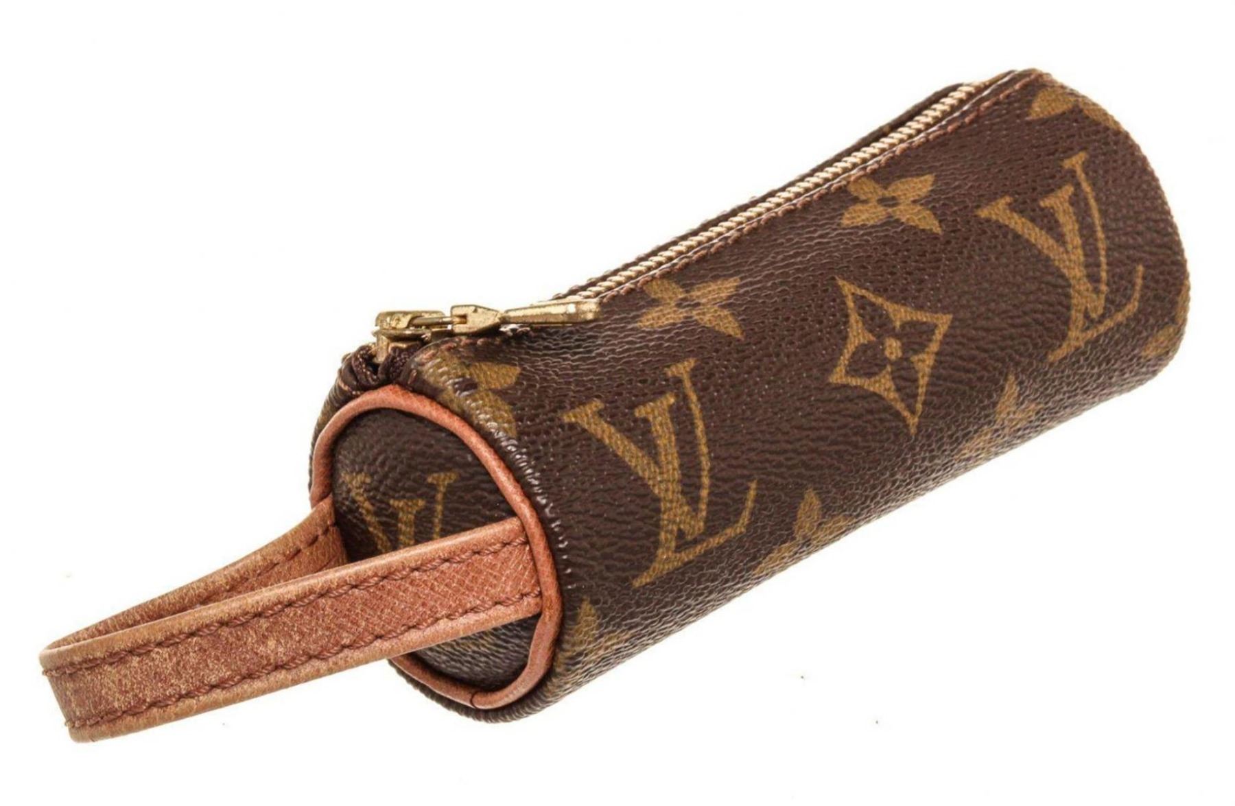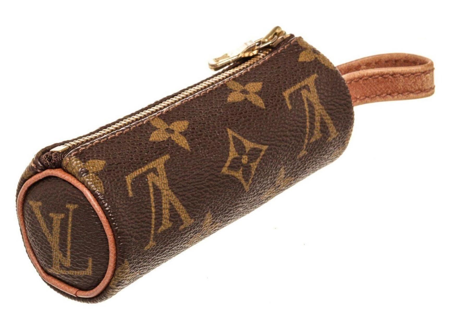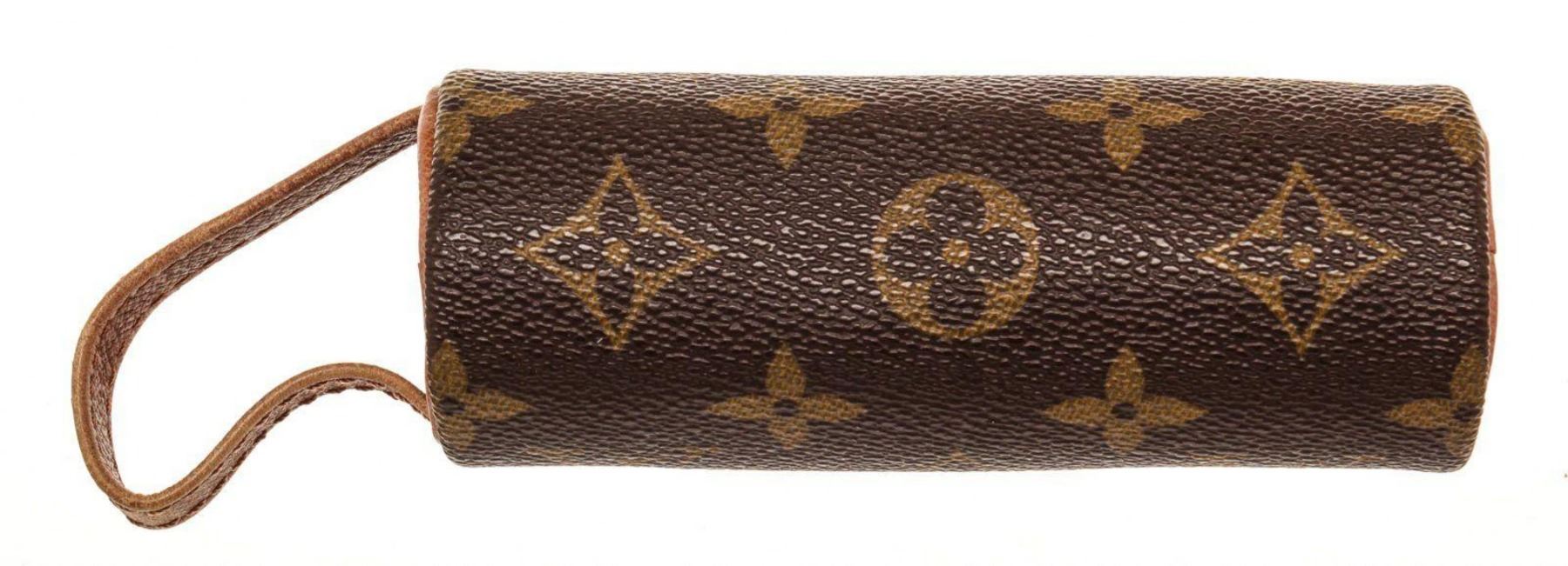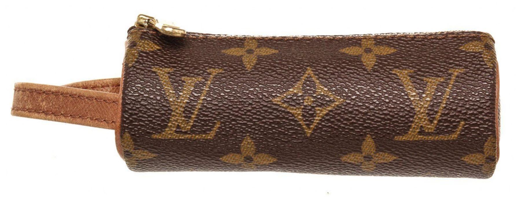 Louis Vuitton Brown Monogram Canvas Etui Golf Ball Case with monogram canvas, gold-tone hardware, tonal leather interior, holds 3 golf balls and has an overall zip closure at top.
