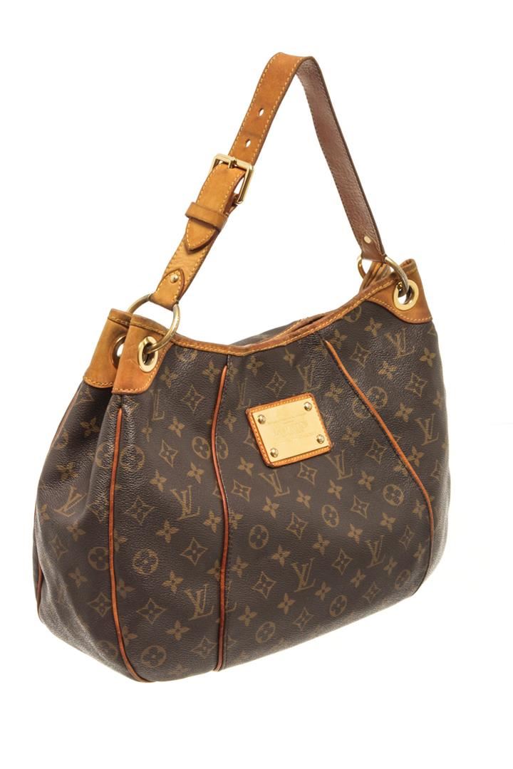 One Louis Vuitton Brown Monogram Canvas Galliera PM Hobo Bag. Item is sold AS-IS. All available information is listed in the description and shown in the photo. louis vuitton brown monogram canvas galliera pm hobo bag with monogram canvas and leather, this bag features a single handle, a snap button closure, and gold tone hardware. Height: 11.03" Width: 4.34" Depth: 14.97, Handle Drop: / 28.02 x 11.03 x 38.03 Cm