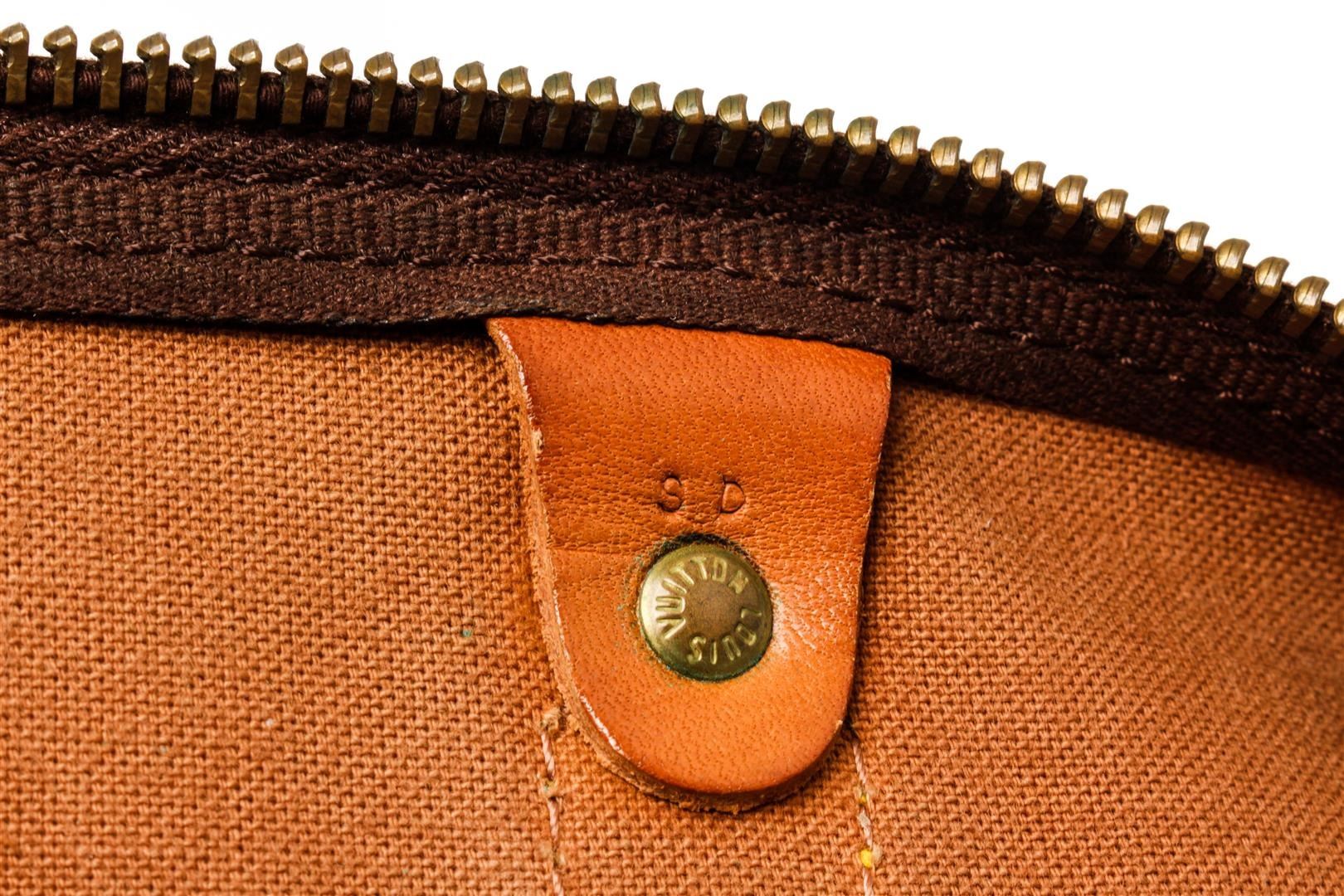 Louis Vuitton Brown Monogram Canvas Keepall 55 Travel Bag. All available information is listed in the description and shown in the photos. Louis Vuitton Brown Monogram Canvas Keepall 55 Travel Bag with gold-tone hardware, trim tan vachetta leather, brown canvas lining, leather trim inside, golden brass pieces, rounded leather handles. W55cm x H27cm x D25cm / 21.65" x 10.62" x 9.84"