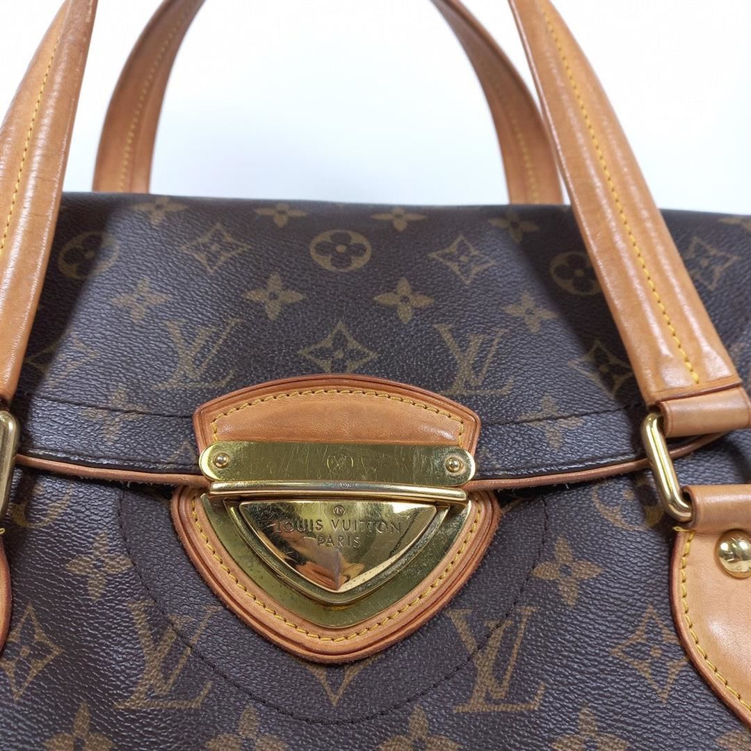 Louis Vuitton Brown Monogram Canvas Leather Beverly GM Shoulder Bag. All available information is listed in the description and shown in the photos. Brown and tan monogram coated canvas Louis Vuitton Beverly GM with gold-tone hardware, tan vachetta leather accents, dual flat shoulder straps, exterior pocket at back, beige Alcantara lining, dual pockets at interior walls; one with snap closure and push-lock closure at front flap. 14"x7"x8"xBag Drop:7.25"/10.1cmx17.7cmx20.3cmxBag Drop:18.4cm