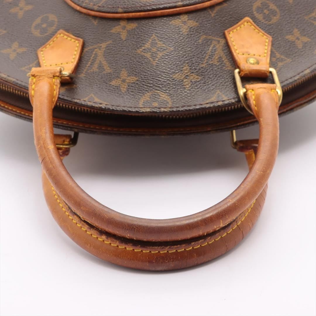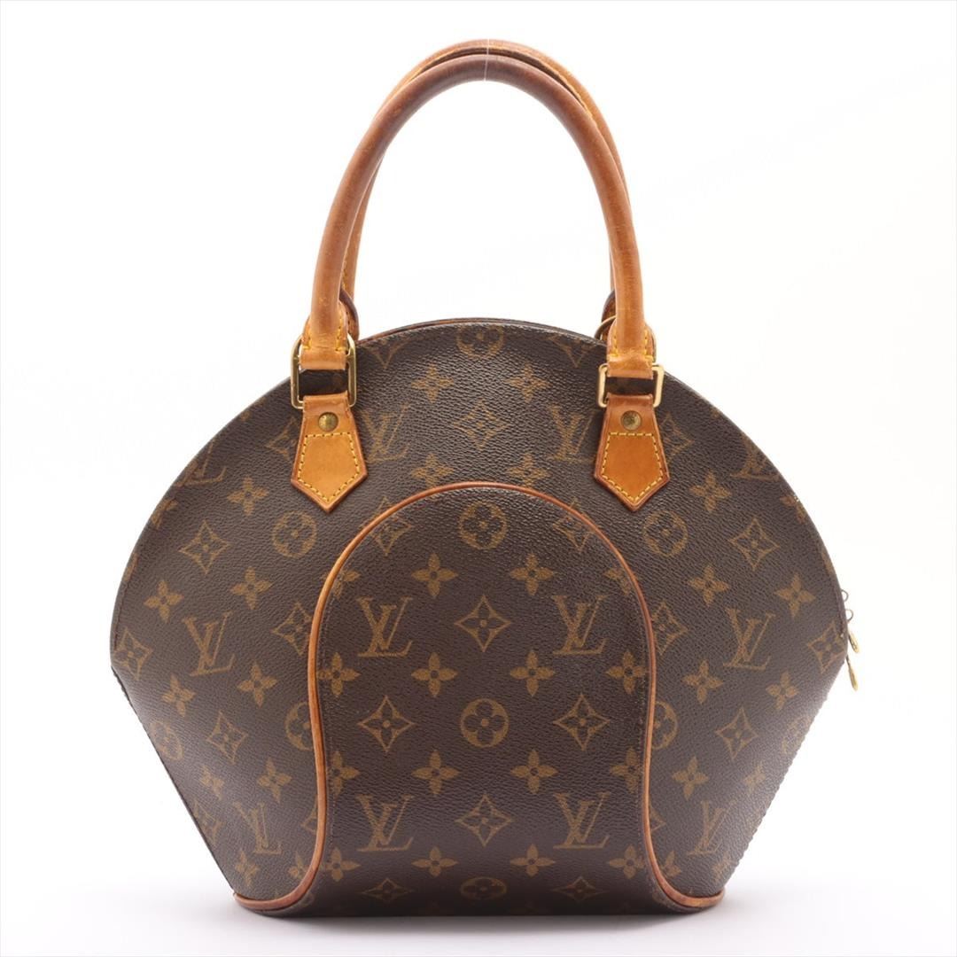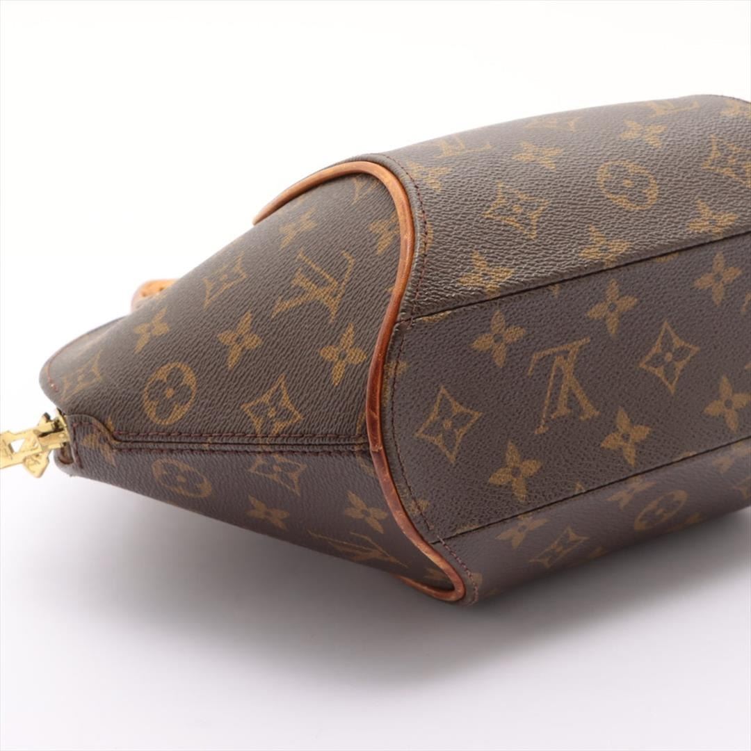 Brown and tan monogram coated canvas Louis Vuitton Ellipse PM with gold-tone hardware, tan vachetta leather trim, dual rolled handles, brown canvas lining, single slit pocket at interior wall and zip closure at top. 10"x3"x12"xBag Drop:4.5"/25.4cmx7.
