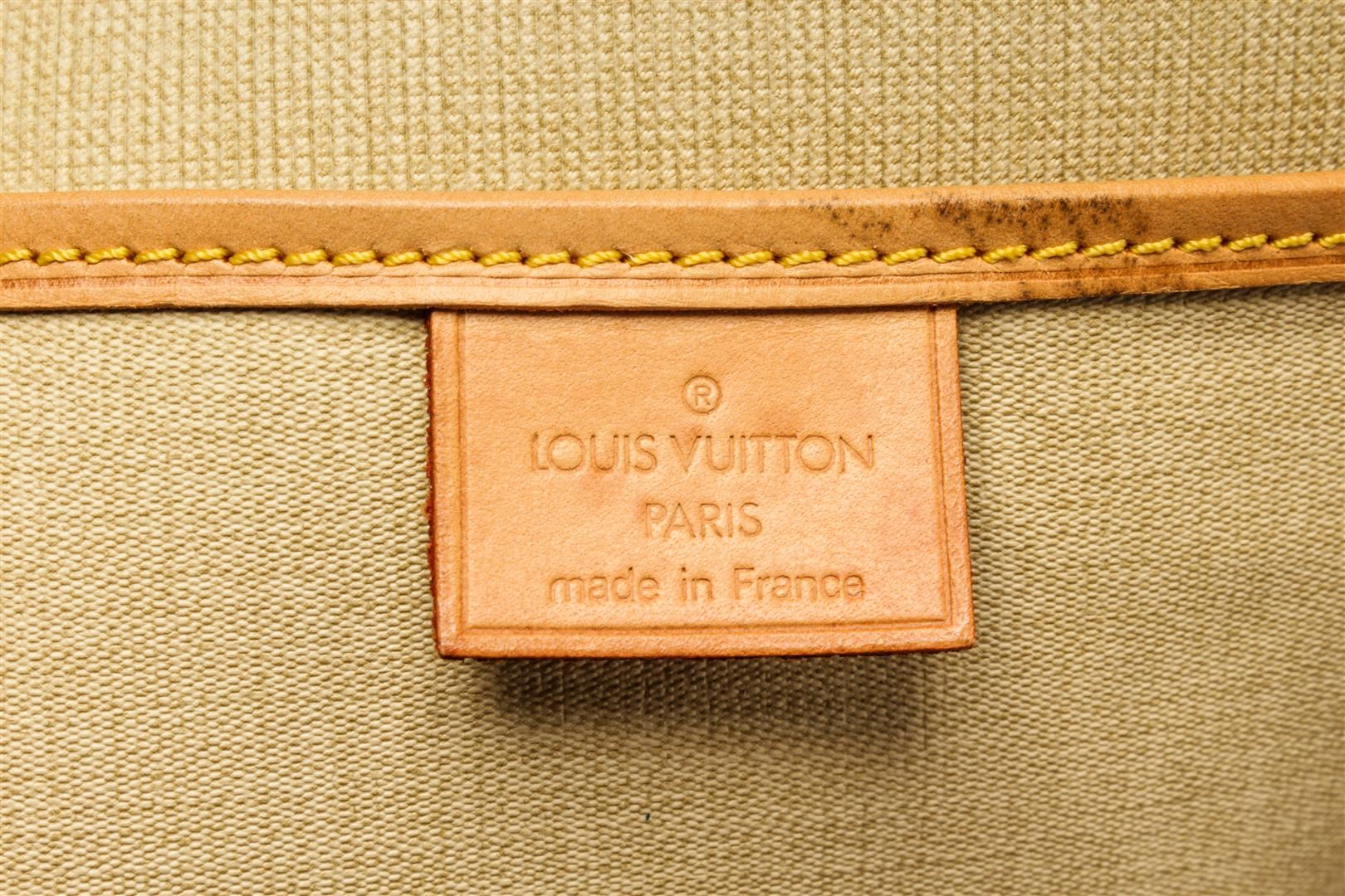 Louis Vuitton Brown Monogram Canvas Leather Excursion Travel Bag. All available information is listed in the description and shown in the photos. Louis Vuitton Brown Monogram Canvas Leather Excursion Travel Bag with the excursion features a monogram canvas body, flat vachetta handles, gold-tone hardware, vachetta trim, canvas lining, a zip around closure at side, and an interior slip pocket. 12.6" L x 7.9" W x 4.3" D, Drop : 5.5" / 32.00 x 20.06 x 10.92 Cm