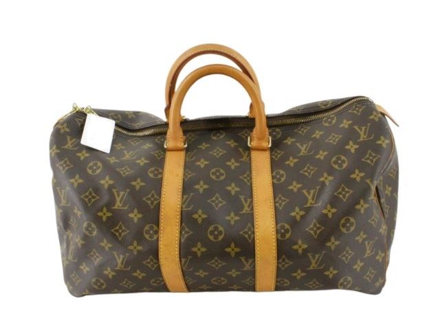 One Louis Vuitton Brown Monogram Canvas Leather Keepall 45cm Duffle Bag. Item is sold AS-IS. All available information is listed in the description and shown in the photo. Brown and tan monogram coated canvas Louis Vuitton Keepall 45 with gold-tone hardware, tan vachetta leather trim, dual flat top handles, brown canvas lining and zip closure at top. 18.5"x8"x10"xBag Drop:4.25"/46.9cmx20.3cmx25.4cmxBag Drop:10.7cm