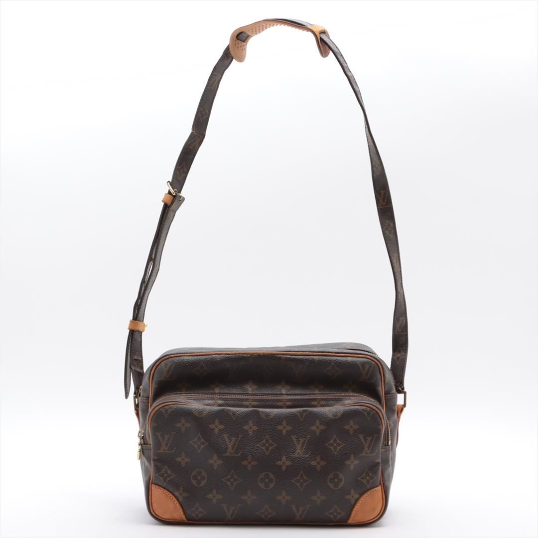 Louis Vuitton Brown Monogram Canvas Leather Nil Crossbody Bag. Please see photos and description for all available information! Brown and tan Monogram coated canvas Louis Vuitton Nil crossbody bag with gold-tone hardware, single adjustable shoulder strap,