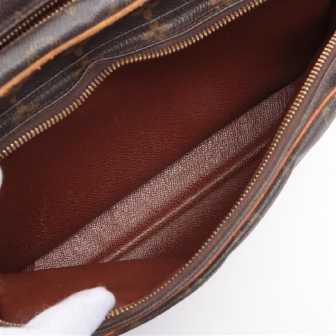 One Louis Vuitton Brown Monogram Canvas Leather Nil Crossbody Bag. Item is sold AS-IS. All available information is listed in the description and shown in the photo. Brown and tan Monogram coated canvas Louis Vuitton Nil crossbody bag with gold-tone hardware, single adjustable shoulder strap, tan leather trim embellishment & single exterior pocket, brown Taiga leather lining & single interior pocket and zip closure at top. Height: 8" Width: 11" Depth: 4" Shoulder Strap Drop: 18"