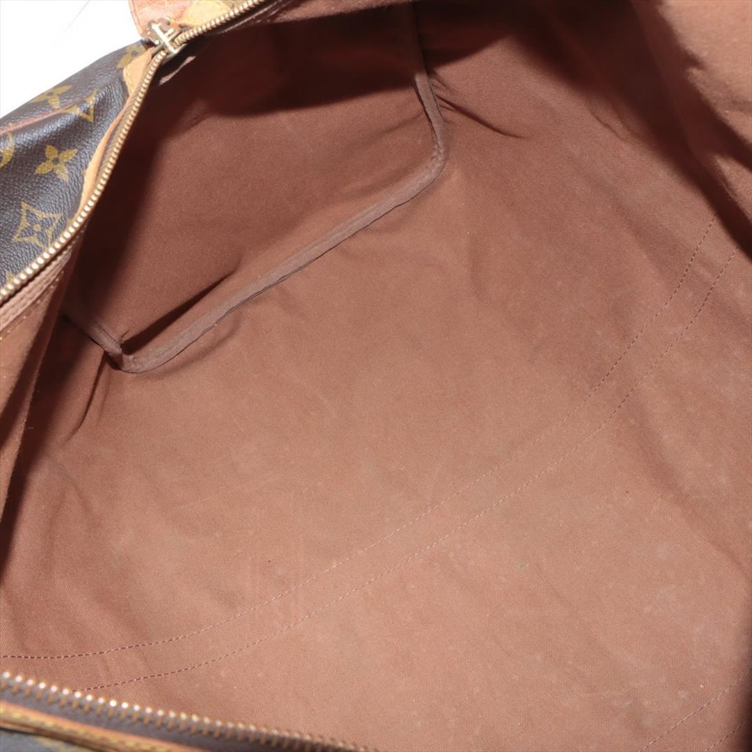Brown and tan monogram coated canvas Louis Vuitton Sac Souple with gold-tone hardware, tan vachetta leather accents, dual flat shoulder straps, brown canvas interior and two-way zip closure at top. Height 12" Width: 21.5" Depth: 9.5" Handle Drop: 6"