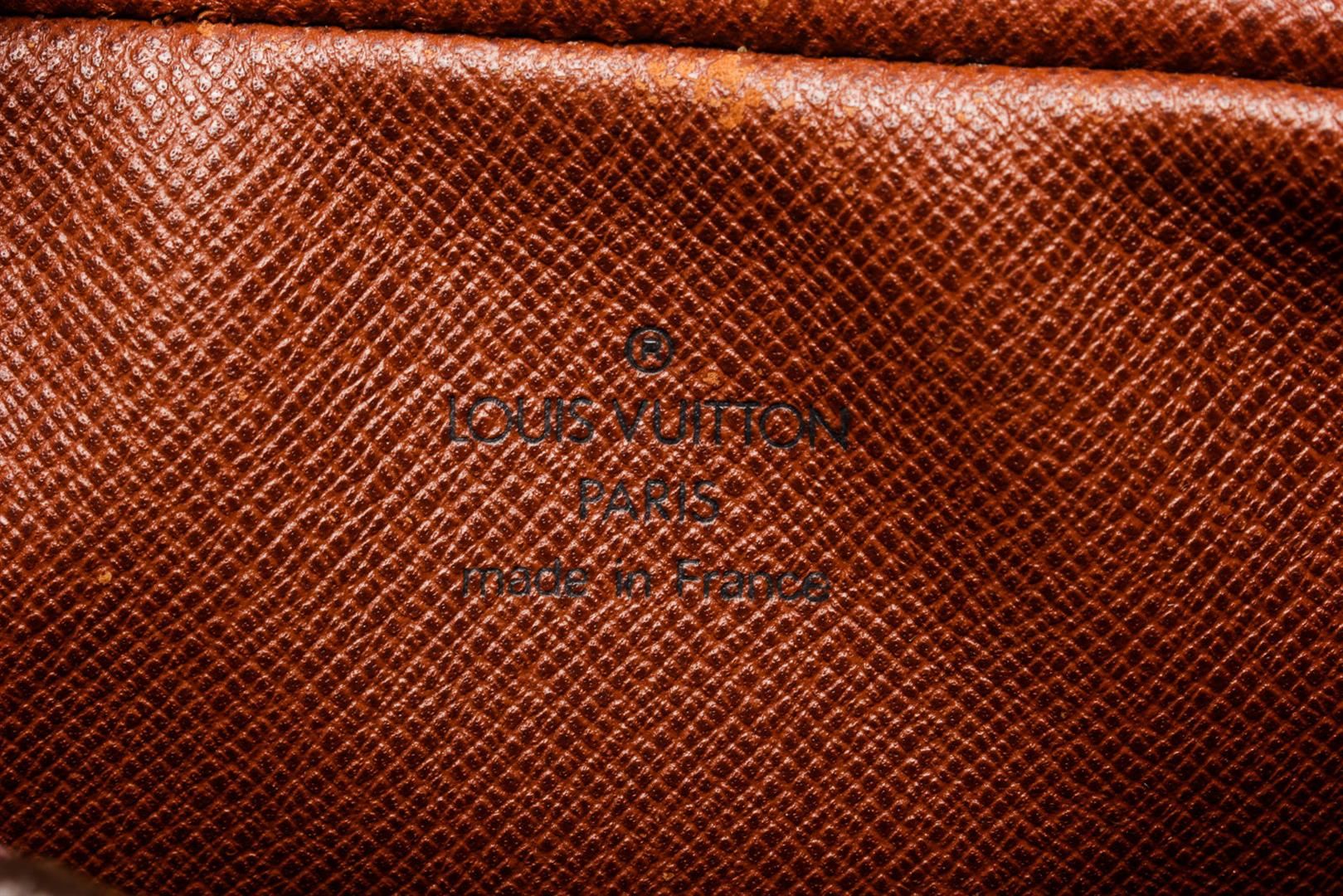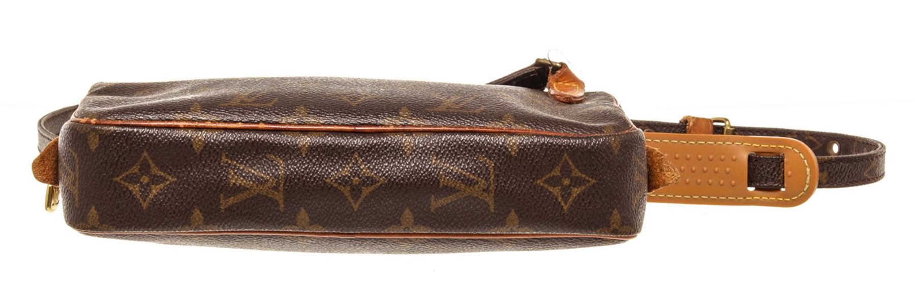 Louis Vuitton Brown Monogram Canvas Marly Bandouliere Bag with Gold-tone hardware, Tan Vachetta leather trim, canvas lining, adjustable shoulder strap, and zip closure.