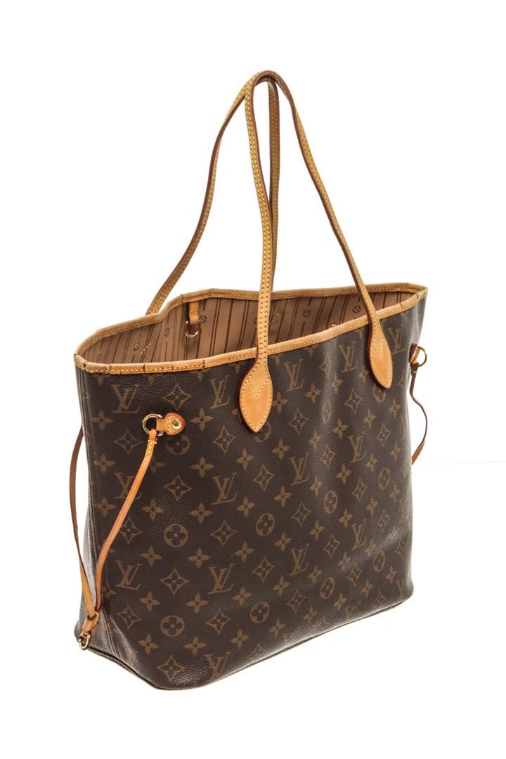 One Louis Vuitton Brown Monogram Canvas Neverfull MM Tote Bag. Item is sold AS-IS. All available information is listed in the description and shown in the photo. Louis Vuitton Brown Monogram Canvas Neverfull MM Tote Bag (HxWxD): 29cm x 31cm x 15cm / 11.41'' x 12.2'' x 5.9''