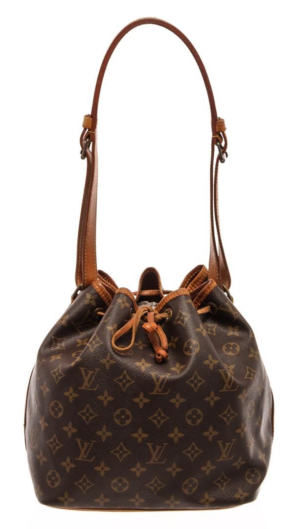 Louis Vuitton Brown Monogram Canvas Noe PM Bucket Bag. All available information is listed in the description and shown in the photos. Louis Vuitton Brown Monogram Canvas Noe PM Bucket Bag with brown coated canvas, brass hardware, single adjustable shoulder strap, canvas lining, drawstring closure at front. Height: 10" Width: 9.5" Depth: 6.75", Shoulder Strap Drop: 9.25-12" / 25.4 x 24.13 x 17.14 Cm
