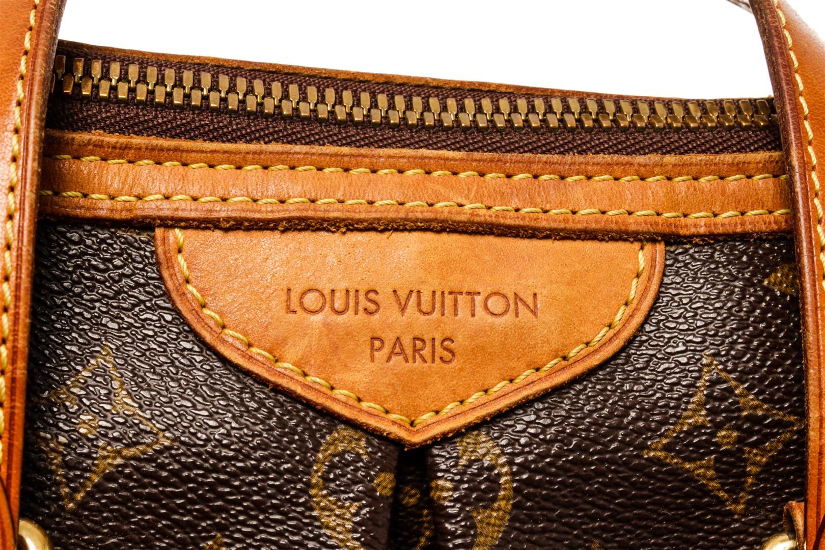 One Louis Vuitton Brown Monogram Canvas Palermo PM Tote Bag. Item is sold AS-IS. All available information is listed in the description and shown in the photo. louis vuitton brown monogram canvas palermo pm tote bag with monogram coated canvas, vachetta cowhide leather top handles, an optional shoulder strap, piping, and trim with polished brass hardware including an lv monogram zipper pull charm. the top zips open to a cocoa brown fabric interior with patch pockets. Length: 14.00 in, Width: 6.25 in, Height: 10.00 in / 35.56 x 15.87 x 25.4 CM