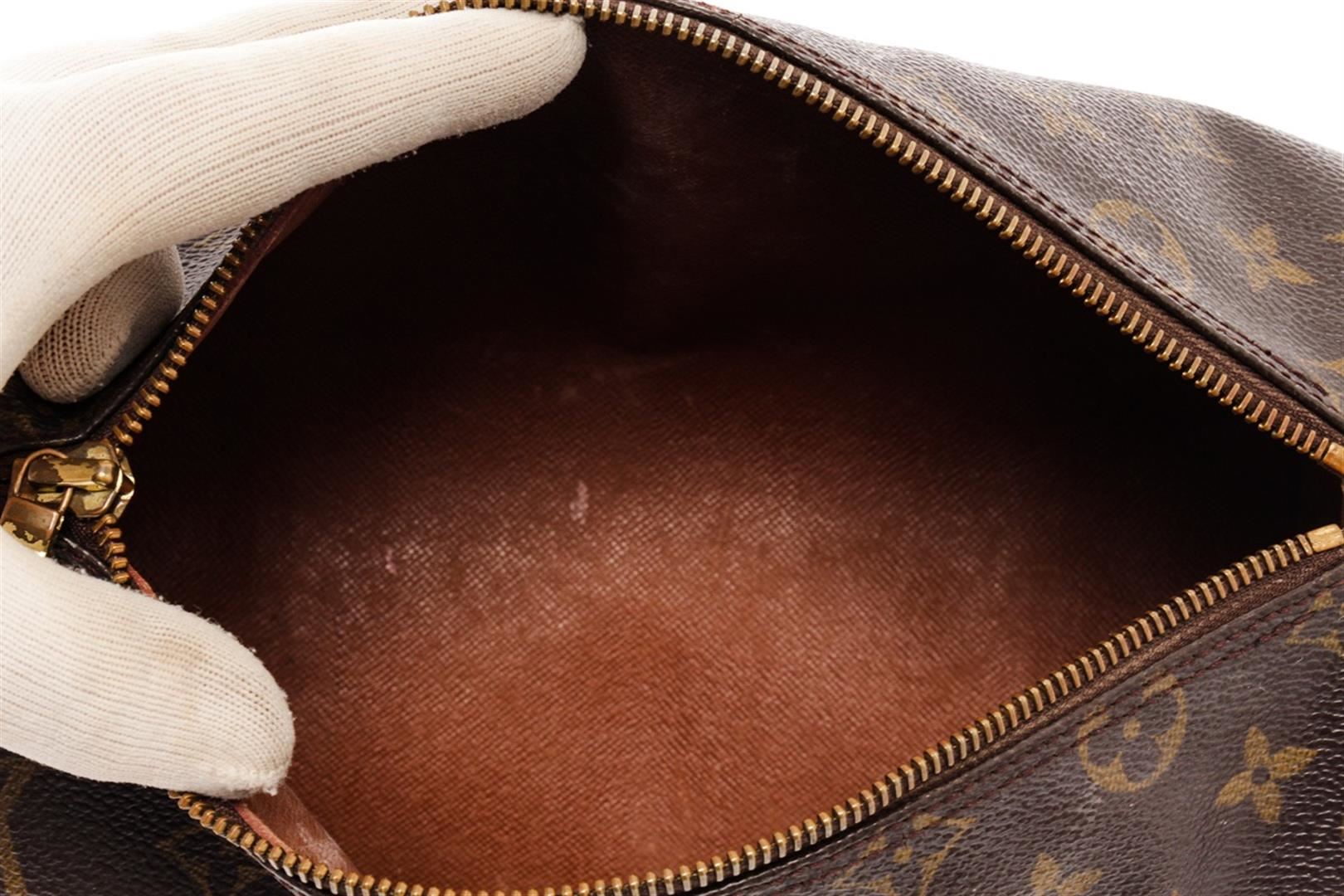 Louis Vuitton Brown Monogram Canvas Papillon 26 Top Handle Bag. All available information is listed in the description and shown in the photos. Louis Vuitton Brown Monogram Canvas Papillon 26 Top Handle Bag with this handbag features, brass hardware, leather trim, dual flat handles, leather trim embellishment, leather lining, zip closure at top. Height: 5.25" Width: 10.25" Depth: 5.25", Handle Drop: 6.5" / 13.33 x 26.03 x 13.33 Cm
