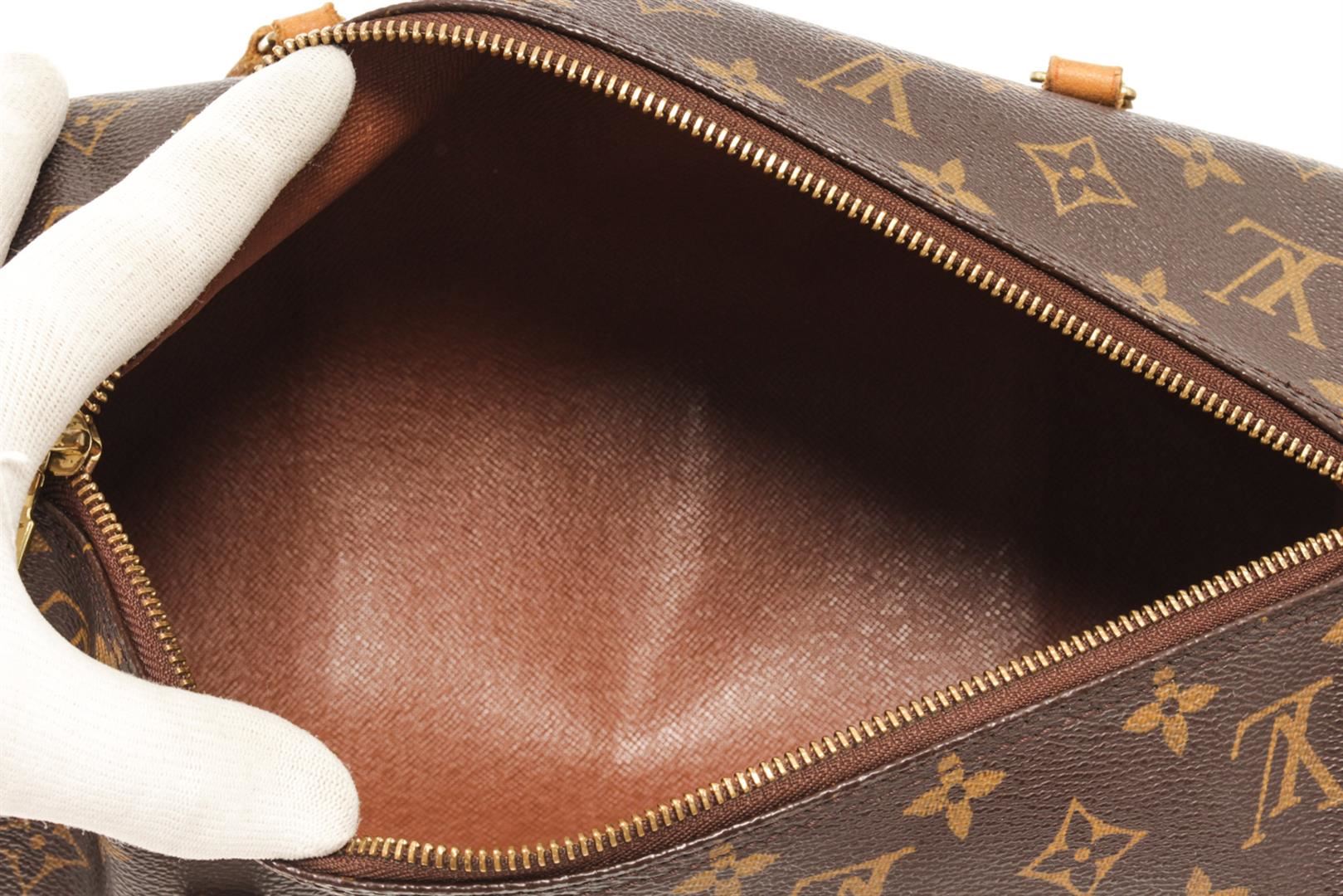 One Louis Vuitton Brown Monogram Canvas Papillon Bag. Item is sold AS-IS. All available information is listed in the description and shown in the photo. louis vuitton brown monogram canvas papillon bag with features a monogram canvas body, flat leather shoulder straps and trim, and a top zip closure. Height: 5.5" Width: 11.8" Depth: 5.5", Handle Drop: 6.7" / 13.97 x 29.97 x 13.97 Cm