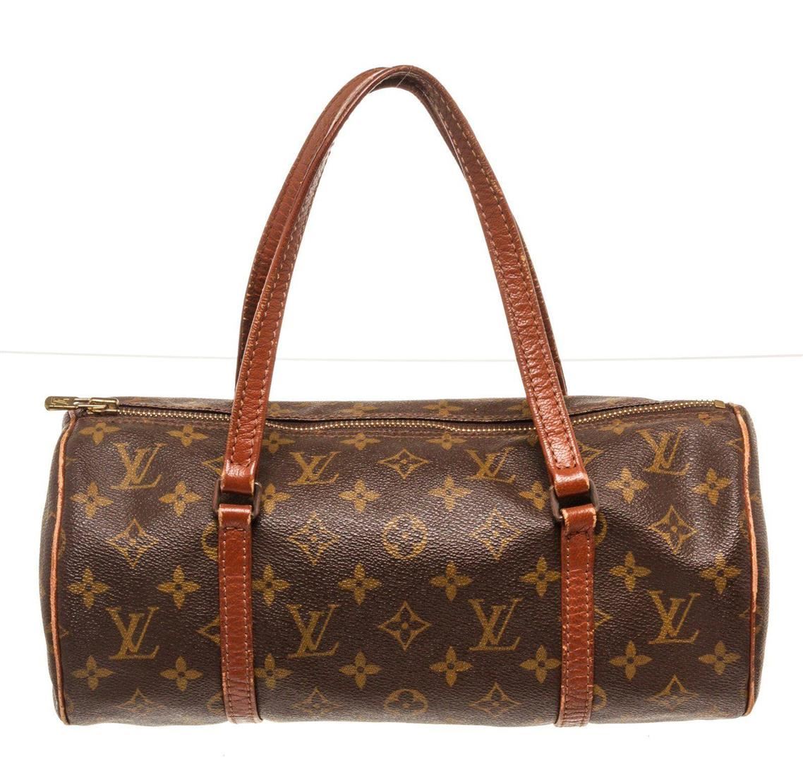 Louis Vuitton Brown Monogram Canvas Papillon Handbag with material monogram canvas, gold-tone hardware, trim tan vachetta leather, shoulder strap and zipper closure.