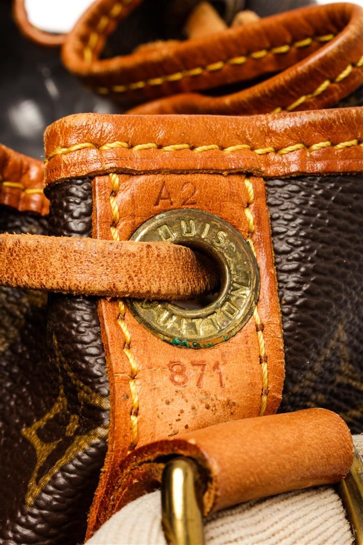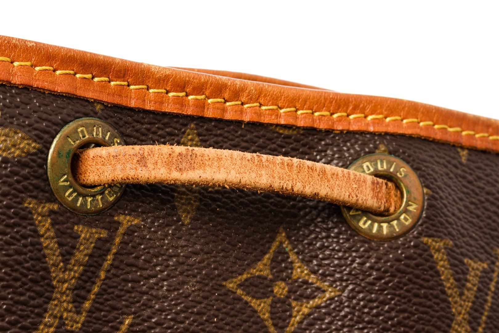 Louis Vuitton Brown Monogram Canvas Petit Noe Shoulder Bag. All available information is listed in the description and shown in the photos. Louis Vuitton Brown Monogram Canvas Petit Noe Shoulder Bag with brown coated canvas, brass hardware, single shoulder strap, canvas lining, pull-through closure at front. Height: 10.5" Width: 9.5" Depth: 7", Shoulder Strap Drop: 10-12.75" / 26.67 x 24.13 x 17.78 Cm