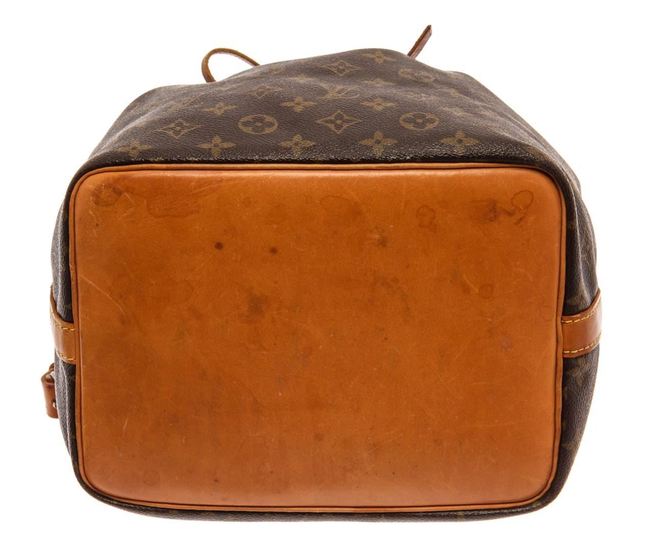 Louis Vuitton Brown Monogram Canvas Petit Noe Shoulder Bag. All available information is listed in the description and shown in the photos. Louis Vuitton Brown Monogram Canvas Petit Noe Shoulder Bag with brown coated canvas, brass hardware, single shoulder strap, canvas lining, pull-through closure at front. Height: 10.5" Width: 9.5" Depth: 7", Shoulder Strap Drop: 10-12.75" / 26.67 x 24.13 x 17.78 Cm