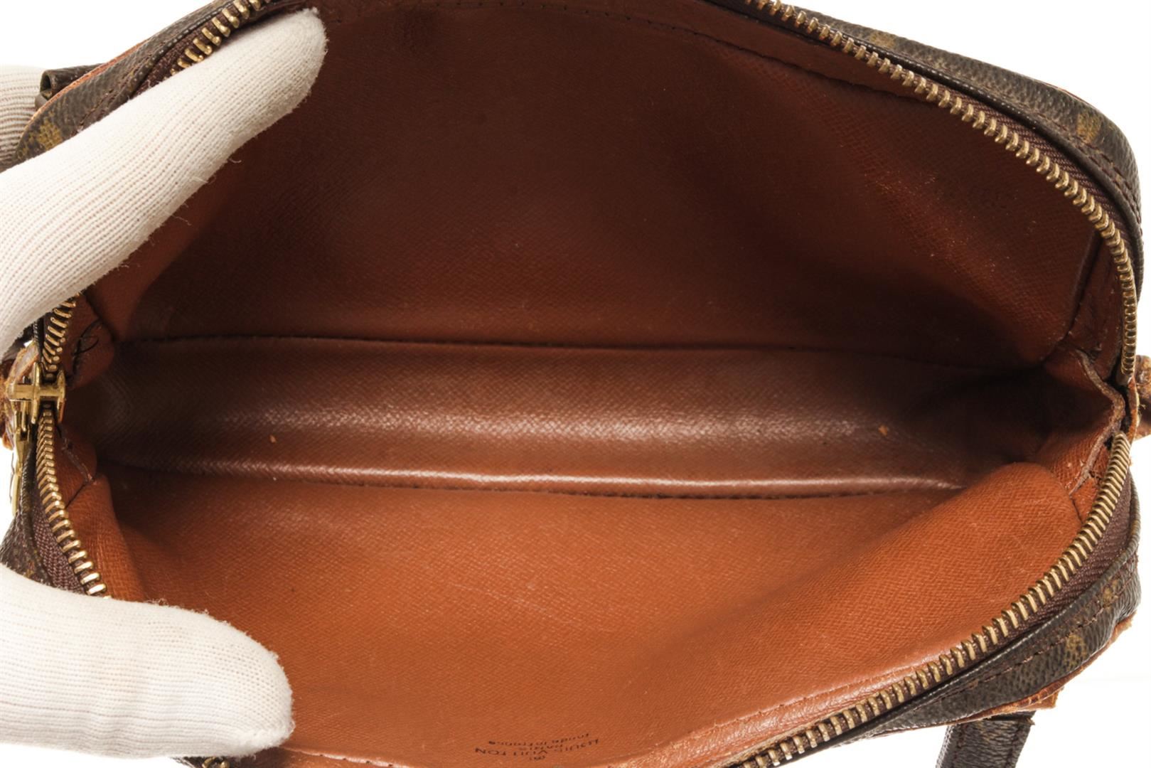 One Louis Vuitton Brown Monogram Canvas Pochette Marli Bandolier Shoulder Bag. Item is sold AS-IS. All available information is listed in the description and shown in the photo. louis vuitton brown monogram canvas pochette marli bandolier shoulder bag (HxWxD): 14cm x 22cm x 4.6cm / 5.51'' x 8.66'' x 1.81''