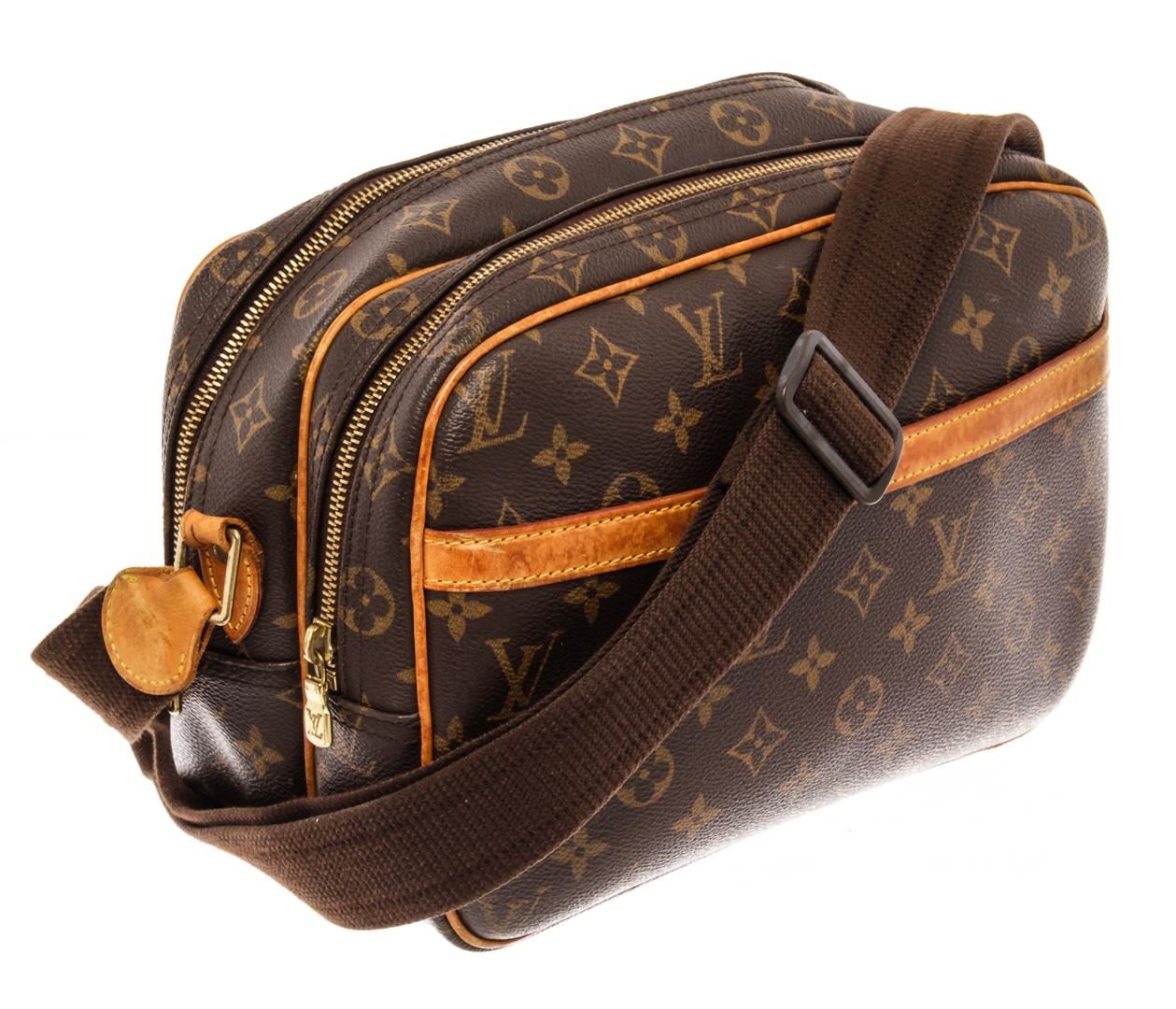 Louis Vuitton Brown Monogram Canvas Reporter PM Messenger Bag. All available information is listed in the description and shown in the photos. Louis Vuitton Brown Monogram Canvas Reporter PM Messenger Bag with brown coated canvas, brass hardware, single adjustable shoulder strap, single exterior pocket, canvas lining & single interior pocket, zip closure at top. Height: 9" Width: 11" Depth: 4.5", Shoulder Strap Drop: 22.5" / 22.86 x 27.94 x 11.43 Cm