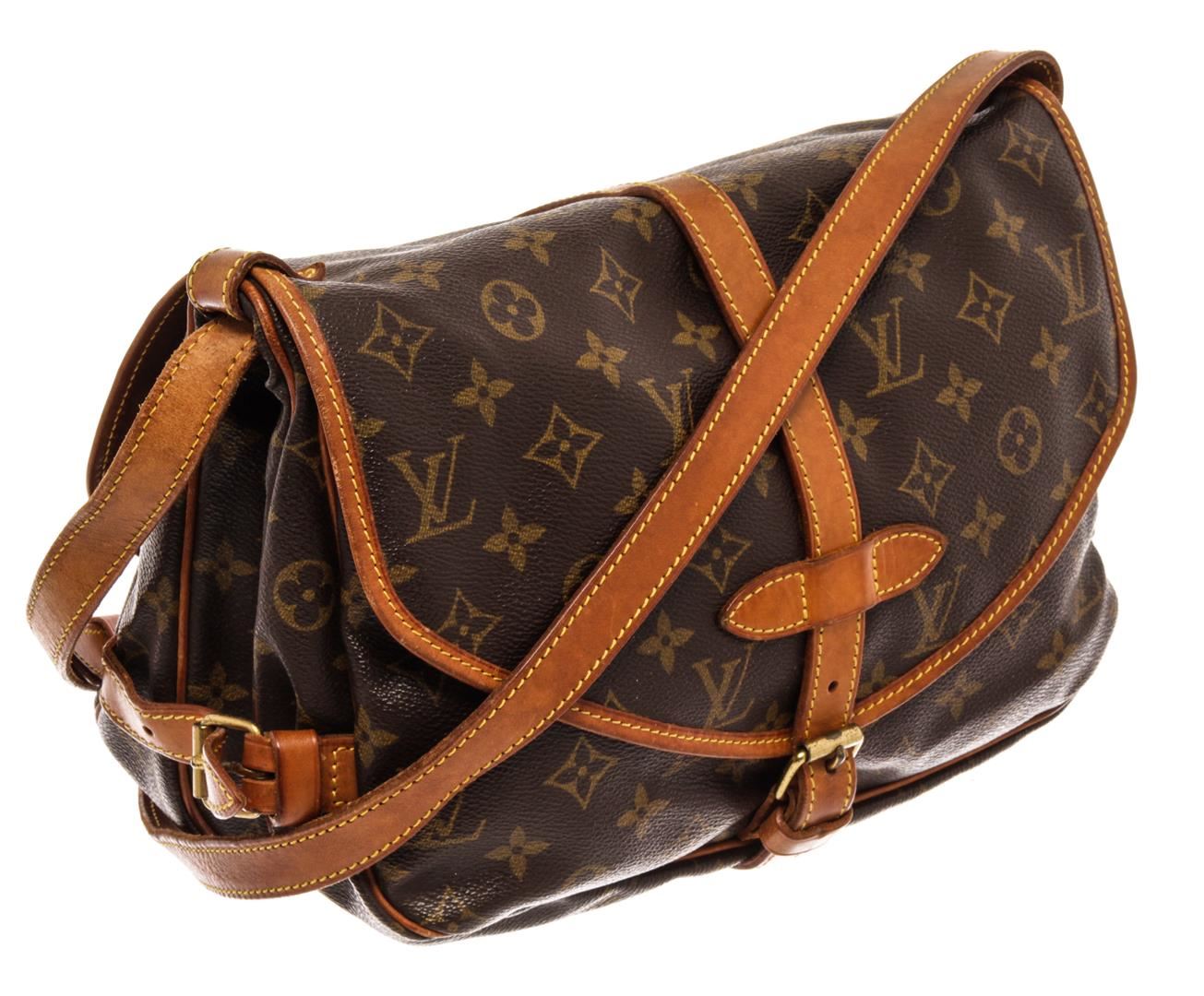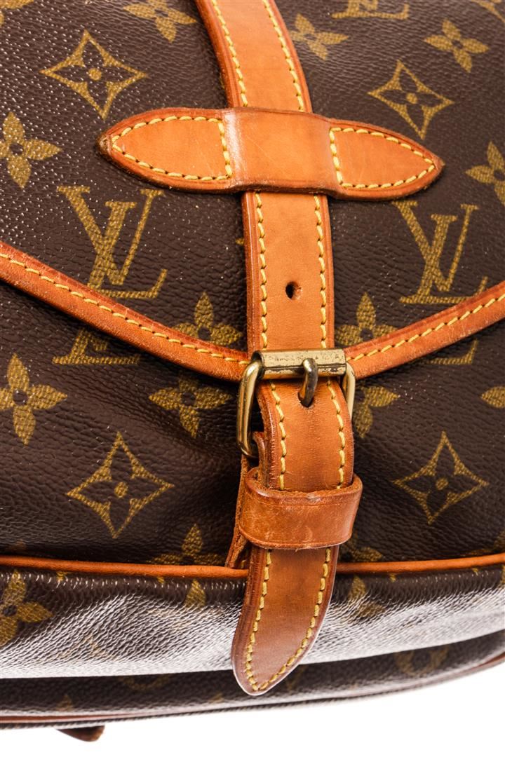 Louis Vuitton Brown Monogram Canvas Saumur 30 Messenger Bag. All available information is listed in the description and shown in the photos. Louis Vuitton Brown Monogram Canvas Saumur 30 Messenger Bag with features monogram canvas. interior compartments have large pockets for your accessories and laptop. dual front compartments in a saddle bag like style, with buckle closures. brass hardware and vachetta leather trim, opens up to two interior areas with slip pocket. lined in brown textile fabric, and holds together at the sides with adjustable buckles. adjustable long shoulder strap with shoulder guard. 10.5"L x 4"W x 8.5"H, Strap drop: 26" / 26.67 x 10.16 x 21.59 Cm