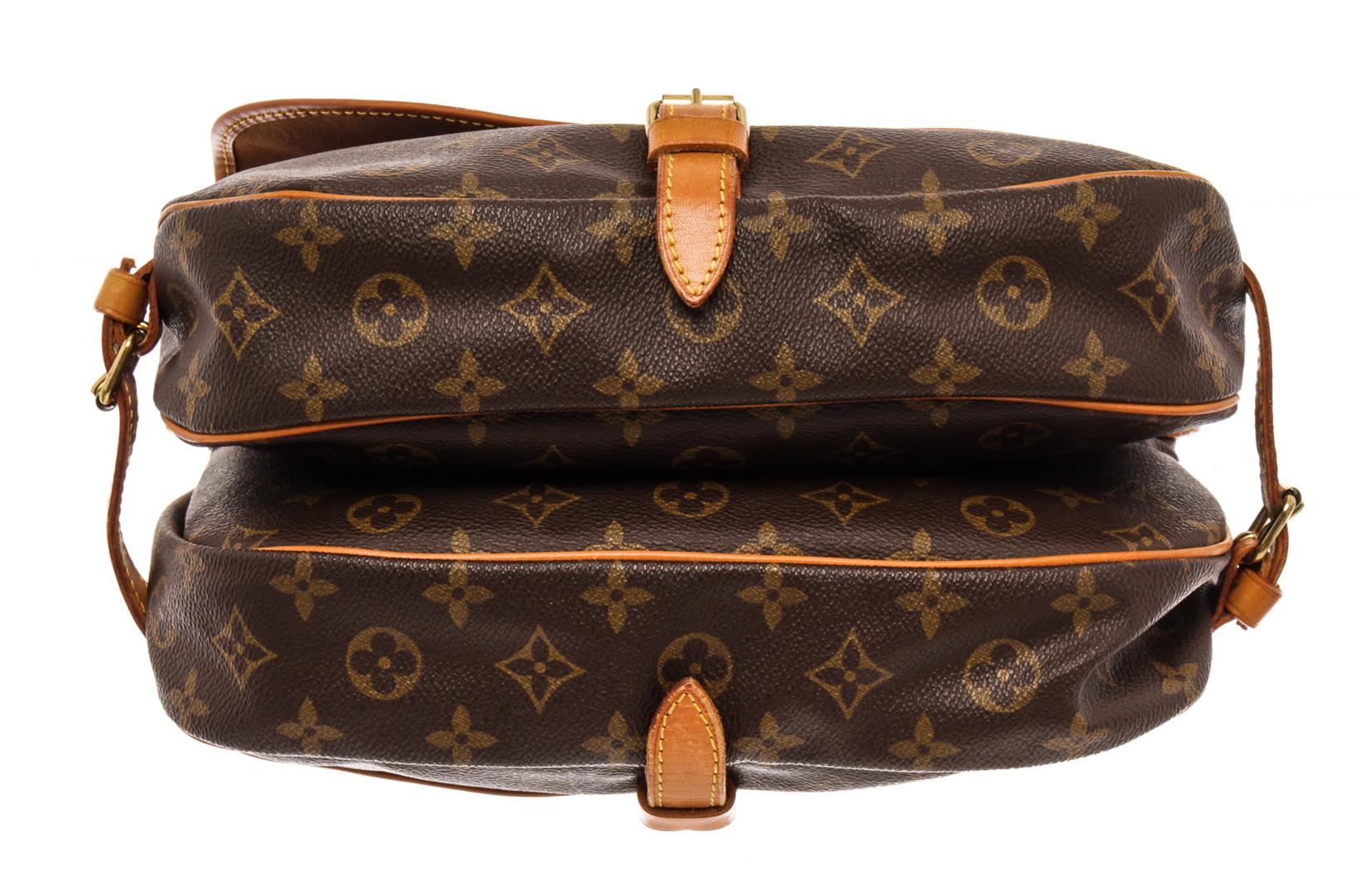 Louis Vuitton Brown Monogram Canvas Saumur 30 Shoulder Bag. All available information is listed in the description and shown in the photos. Louis Vuitton Brown Monogram Canvas Saumur 30 Shoulder Bag with brown, printed, brass hardware, single adjustable shoulder strap, single exterior pocket, canvas lining & single interior pocket, buckle closure at front. Height: 9 in (22.86 cm), Width: 11.5 in (29.21 cm), Depth: 4.5 in (11.43 cm)