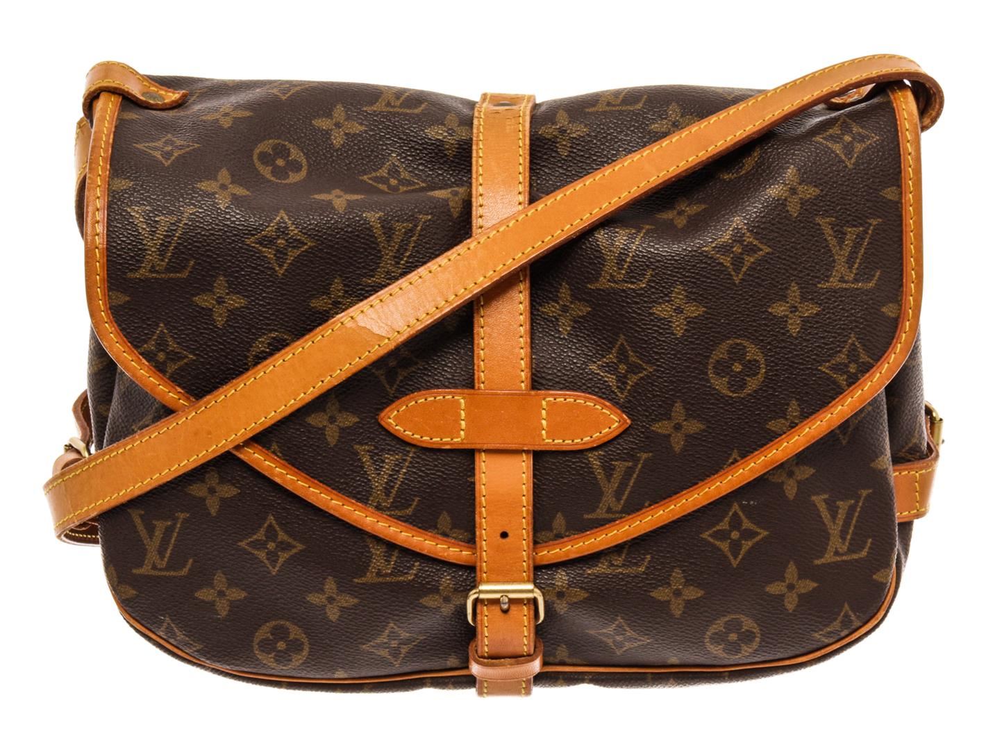 Louis Vuitton Brown Monogram Canvas Saumur 30 Shoulder Bag. All available information is listed in the description and shown in the photos. Louis Vuitton Brown Monogram Canvas Saumur 30 Shoulder Bag with brown, printed, brass hardware, single adjustable shoulder strap, single exterior pocket, canvas lining & single interior pocket, buckle closure at front. Height: 9 in (22.86 cm), Width: 11.5 in (29.21 cm), Depth: 4.5 in (11.43 cm)