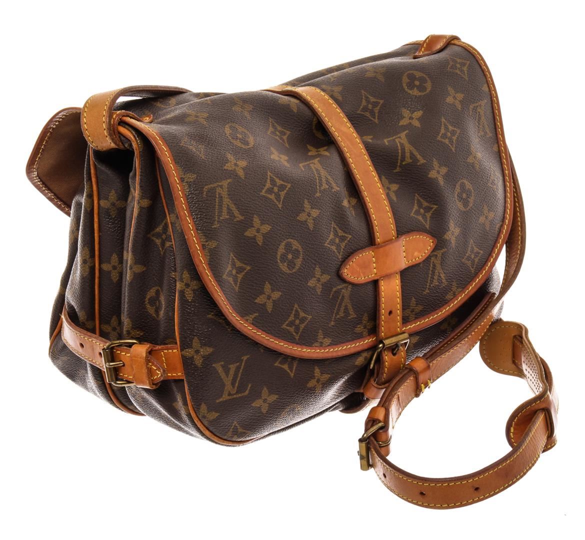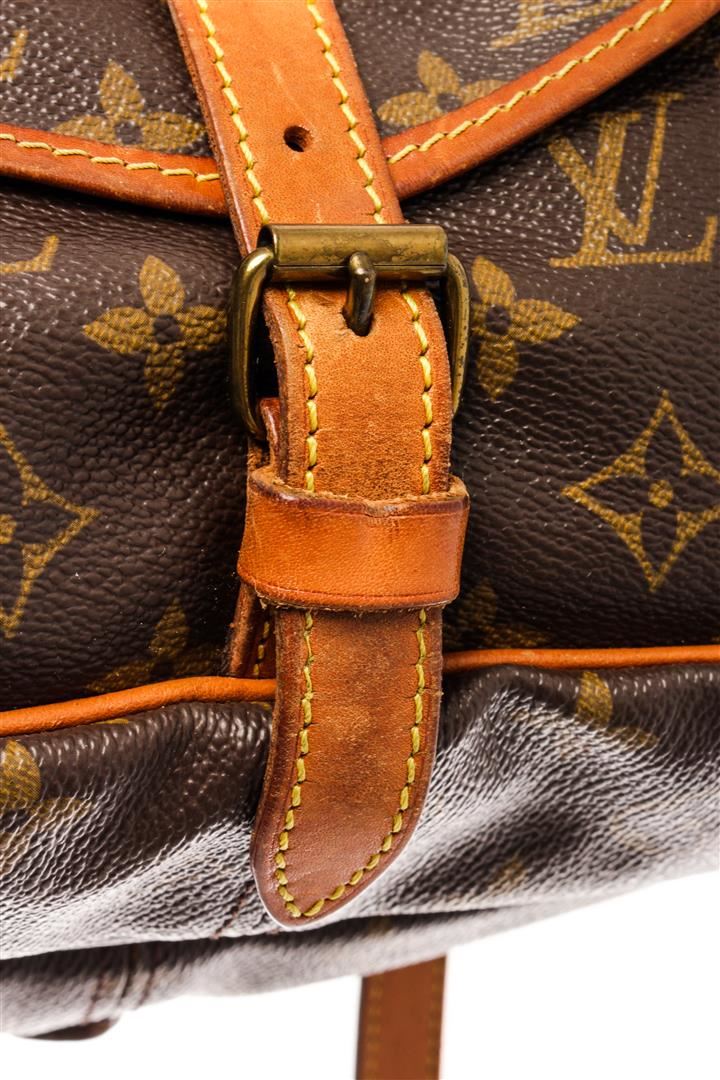 Louis Vuitton Brown Monogram Canvas Saumur 30cm Shoulder Bag. All available information is listed in the description and shown in the photos. Louis Vuitton Brown Monogram Canvas Saumur 30cm Shoulder Bag with brown coated canvas, brass hardware, leather trim, single adjustable shoulder strap, leather trim embellishment, canvas lining & three interior pockets, flap & buckle closures at front. Height: 10" Width: 12" Depth: 9.25", Shoulder Strap Drop: 19.5" / 25.4 x 30.48 x 23.49 Cm