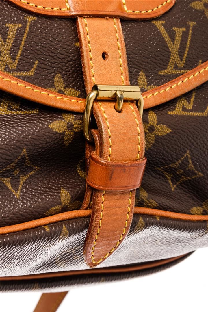 Louis Vuitton Brown Monogram Canvas Saumur 30cm Shoulder Bag. All available information is listed in the description and shown in the photos. Louis Vuitton Brown Monogram Canvas Saumur 30cm Shoulder Bag with brown coated canvas, brass hardware, leather trim, single adjustable shoulder strap, leather trim embellishment, canvas lining & three interior pockets, flap & buckle closures at front. Height: 10" Width: 12" Depth: 9.25", Shoulder Strap Drop: 19.5" / 25.4 x 30.48 x 23.49 Cm