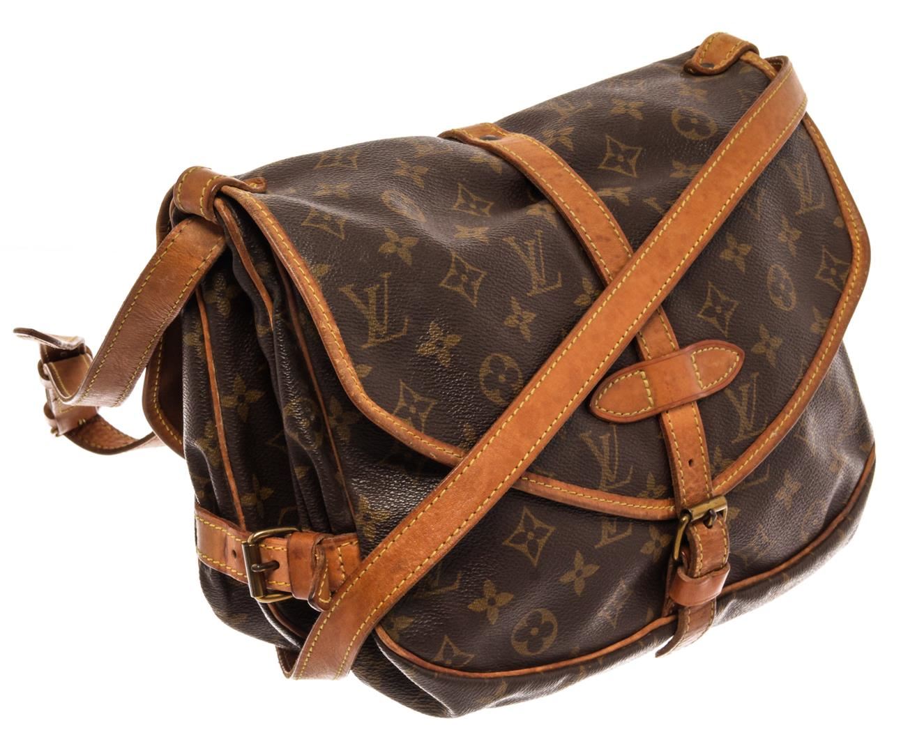 Louis Vuitton Brown Monogram Canvas Saumur 30cm Shoulder Bag. All available information is listed in the description and shown in the photos. Louis Vuitton Brown Monogram Canvas Saumur 30cm Shoulder Bag with brown coated canvas, brass hardware, leather trim, single adjustable shoulder strap, leather trim embellishment, canvas lining & three interior pockets, flap & buckle closures at front. Height: 10" Width: 12" Depth: 9.25", Shoulder Strap Drop: 19.5" / 25.4 x 30.48 x 23.49 Cm