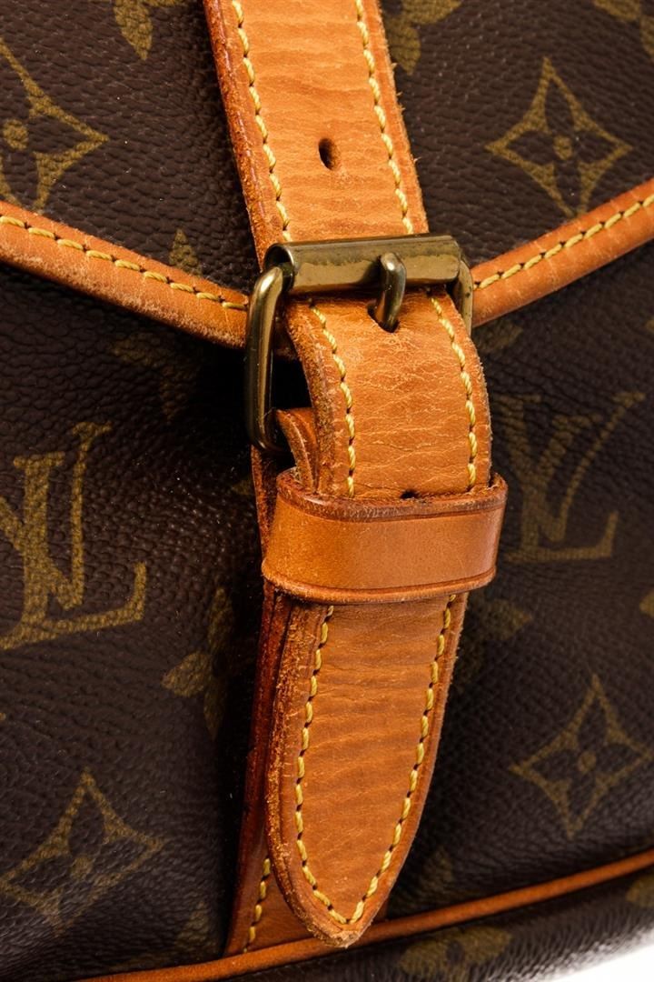 Louis Vuitton Brown Monogram Canvas Saumur 35 Messenger Bag. All available information is listed in the description and shown in the photos. Louis Vuitton Brown Monogram Canvas Saumur 35 Messenger Bag with brown coated canvas, brass hardware, single adjustable shoulder strap, leather trim embellishment, canvas lining & three interior pockets, buckle closure at front. Height: 12" Width: 14" Depth: 4.25", Shoulder Strap Drop: 17.75" / 30.48 x 35.56 x 10.79 Cm