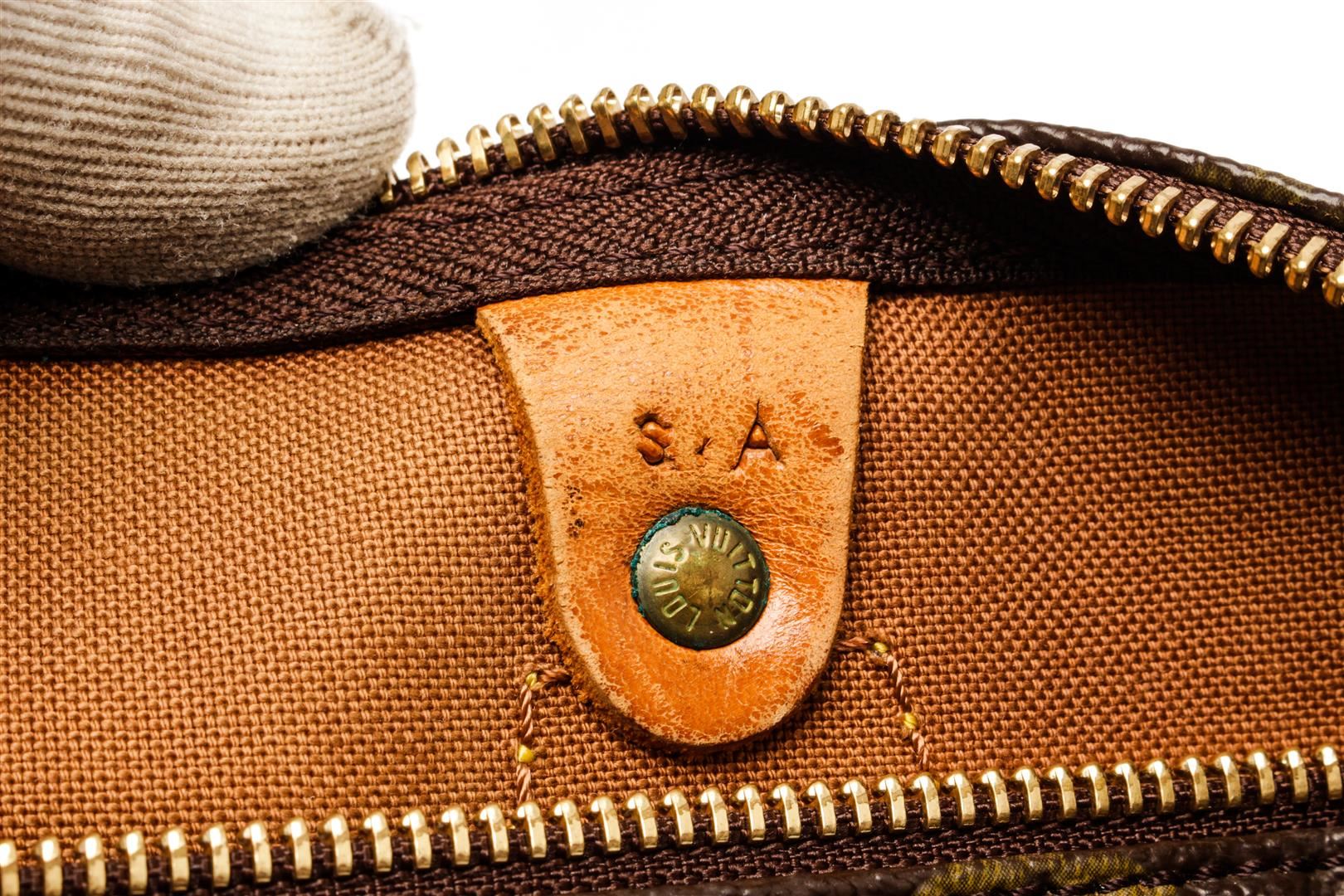 Louis Vuitton Brown Monogram Canvas Speedy 30 Satchel Bag. All available information is listed in the description and shown in the photos. Louis Vuitton Brown Monogram Canvas Speedy 30 Satchel Bag with gold-tone hardware, internal slip pocket, leather trim, two rolled top handles, main compartment top zip fastening. Height: 9.8 in (24.9 cm), Width: 15 in (38.1 cm), Depth: 7.5 in (19.05 cm)