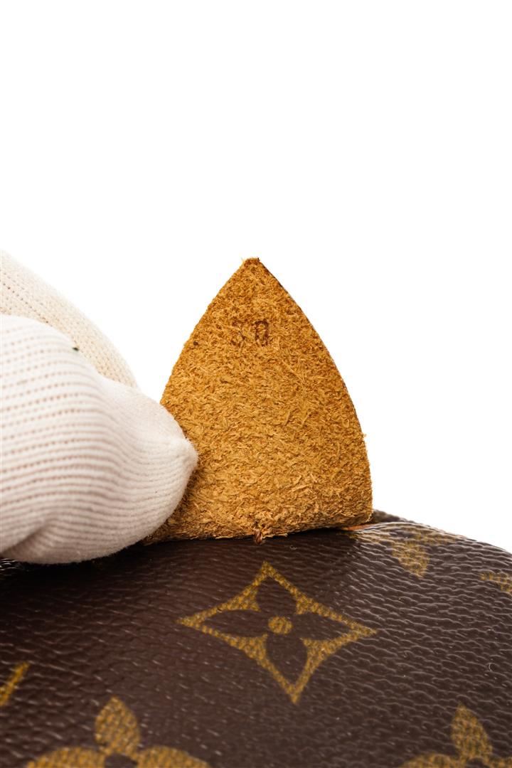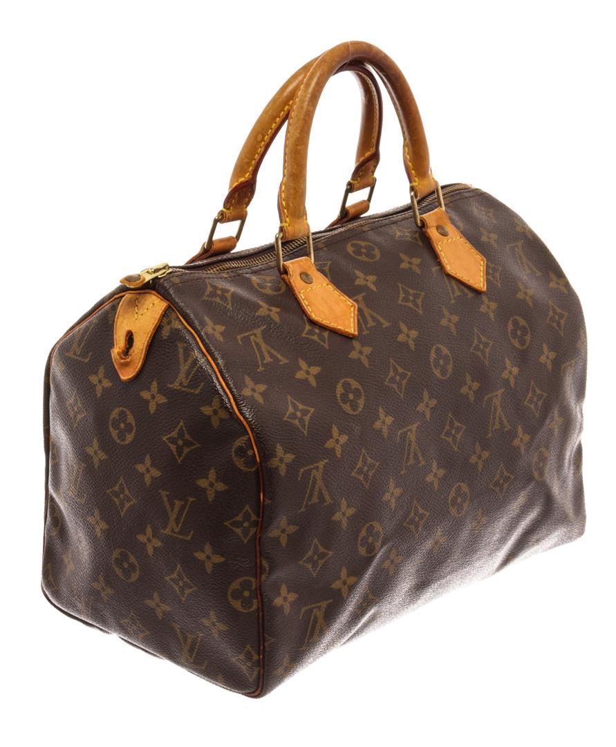 Louis Vuitton Brown Monogram Canvas Speedy 30 Satchel Bag. All available information is listed in the description and shown in the photos. Louis Vuitton Brown Monogram Canvas Speedy 30 Satchel Bag with brown & neutrals, brass hardware, leather trim, rolled handles, leather trim embellishment, grosgrain lining & single interior pocket, zip closure at top. Height: 8.25" Width: 11.75" Depth: 6.75", Handle Drop: 3" / 20.95 x 29.84 x 17.14 Cm