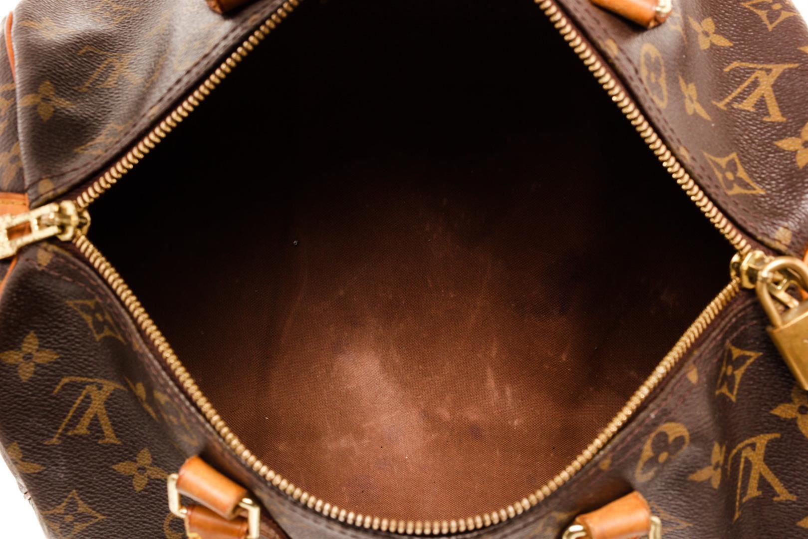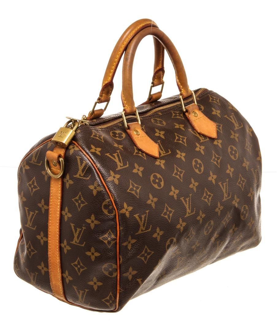 Louis Vuitton Brown Monogram Canvas Speedy 30cm Satchel Bag. All available information is listed in the description and shown in the photos. Louis Vuitton Brown Monogram Canvas Speedy 30cm Satchel Bag with monogram canvas, gold-tone hardware, trim tan vachetta leather, dual top handle and zipper closure.