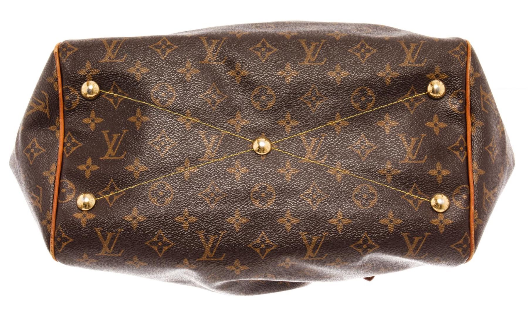 Louis Vuitton Brown Monogram Canvas Tivoli GM Tote Bag. All available information is listed in the description and shown in the photos. Louis Vuitton Brown Monogram Canvas Tivoli GM Tote Bag with gold-tone hardware, brown monogram canvas leather trim, two adjustable top handles, top zip fastening, internal patch pocket internal logo patch, metal feet Depth 7.5 in, Height 10.6 in, Width 12.8 in / Depth 19 cm, Height 27 cm, Width 32.5 cm