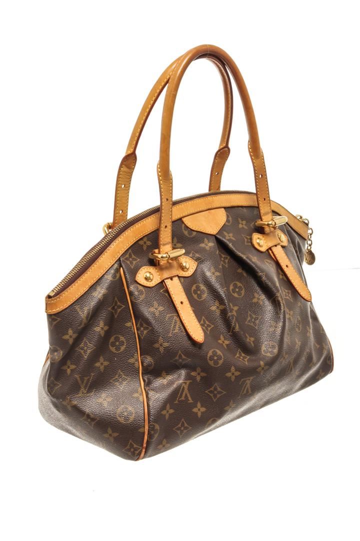 One Louis Vuitton Brown Monogram Canvas Tivoli GM Tote bag. Item is sold AS-IS. All available information is listed in the description and shown in the photo. louis vuitton brown monogram canvas tivoli gm tote bag with gold-tone hardware, brown monogram canvas leather trim, two adjustable top handles, top zip fastening, internal patch pocket internal logo patch, metal feet, zip closure. There is some wear on the leather lining. Please refer to photos. Depth 7.5 in, Height 10.6 in, Width 12.8 in / Depth 19 cm, Height 27 cm, Width 32.5 cm