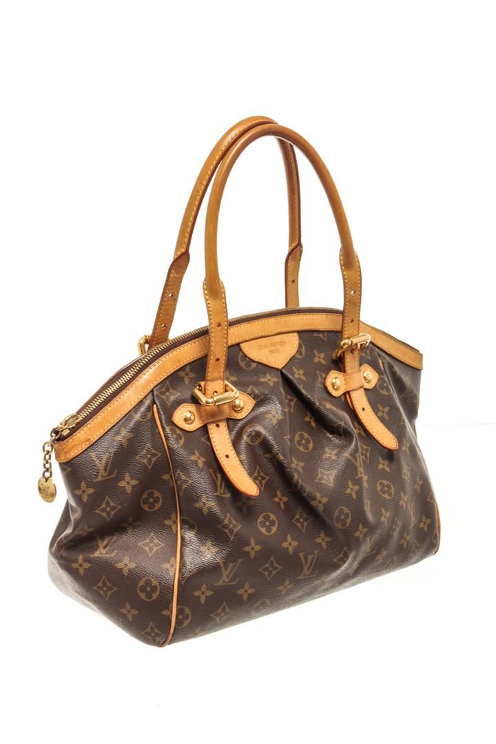 One Louis Vuitton Brown Monogram Canvas Tivoli GM Tote bag. Item is sold AS-IS. All available information is listed in the description and shown in the photo. louis vuitton brown monogram canvas tivoli gm tote bag with gold-tone hardware, brown monogram canvas leather trim, two adjustable top handles, top zip fastening, internal patch pocket internal logo patch, metal feet, zip closure. There is some wear on the leather lining. Please refer to photos. Depth 7.5 in, Height 10.6 in, Width 12.8 in / Depth 19 cm, Height 27 cm, Width 32.5 cm