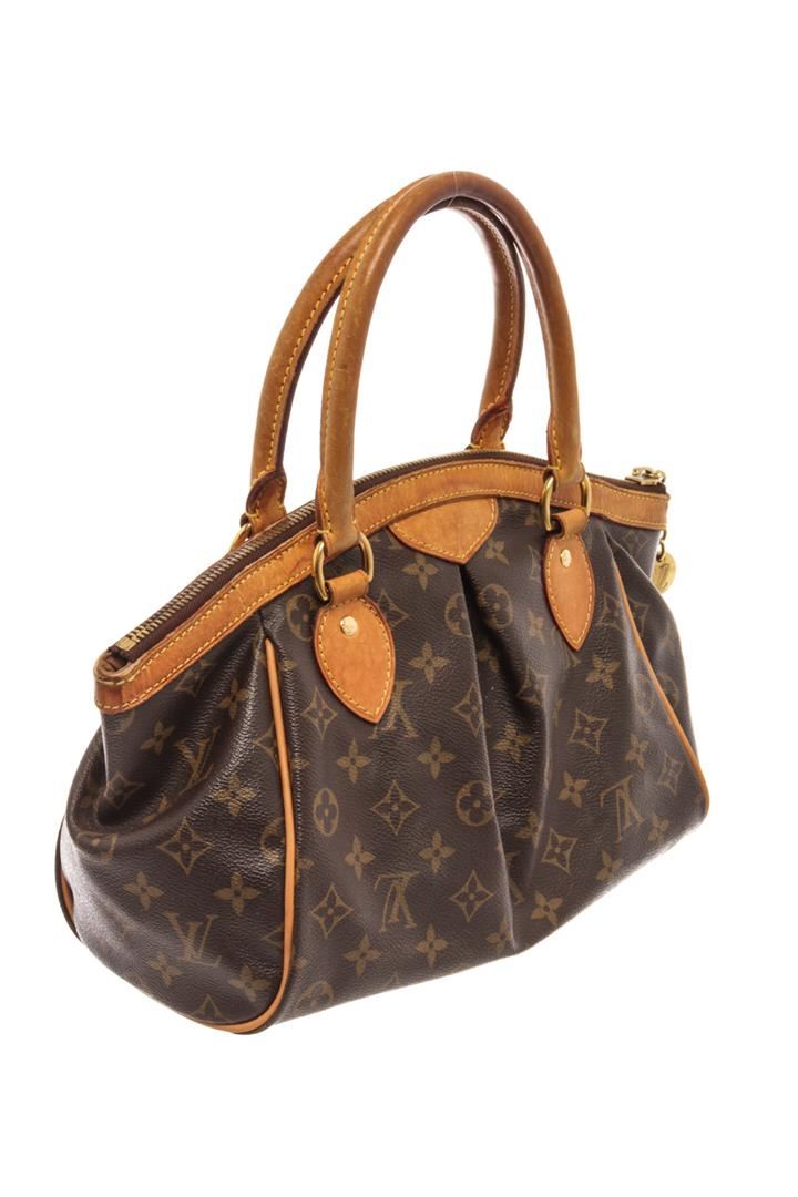 Louis Vuitton Brown Monogram Canvas Tivoli PM Tote Bag. All available information is listed in the description and shown in the photos. Louis Vuitton Brown Monogram Canvas Tivoli PM Tote Bag with brown, signature Monogram canvas, leather trim, logo patch to the front, two rolled top handles, top zip fastening, main compartment, multiple internal slip pockets, metal feet Depth 5.1 in, Height 7.1 in, Width 10.6 in / Depth 13 cm, Height 18 cm, Width 27 cm