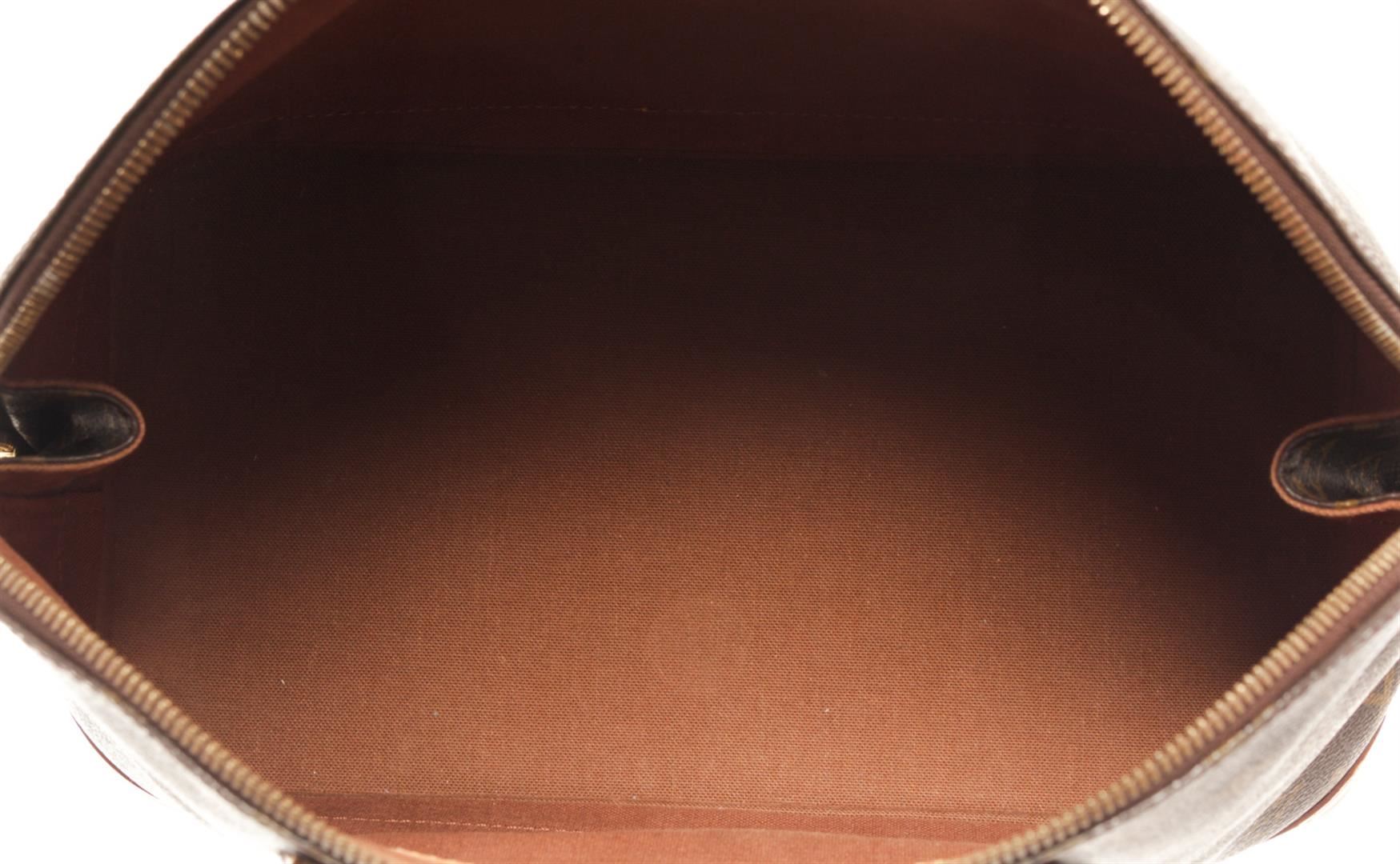 One Louis Vuitton Brown Monogram Canvas and Leather Alma PM Bag. Item is sold AS-IS. All available information is listed in the description and shown in the photo. louis vuitton brown monogram canvas and leather alma pm bag with constructed from monogram canvas and leather it displays dual handles at the top gold tone hardware and a padlock. the fabric lined interior of the bag is secured by a zipper closure at the top. Bottom of bag is worn, Height: 25 cm Width: 16 cm Length: 31 cm / 9.84" x 6.29" x 12.20" Inches