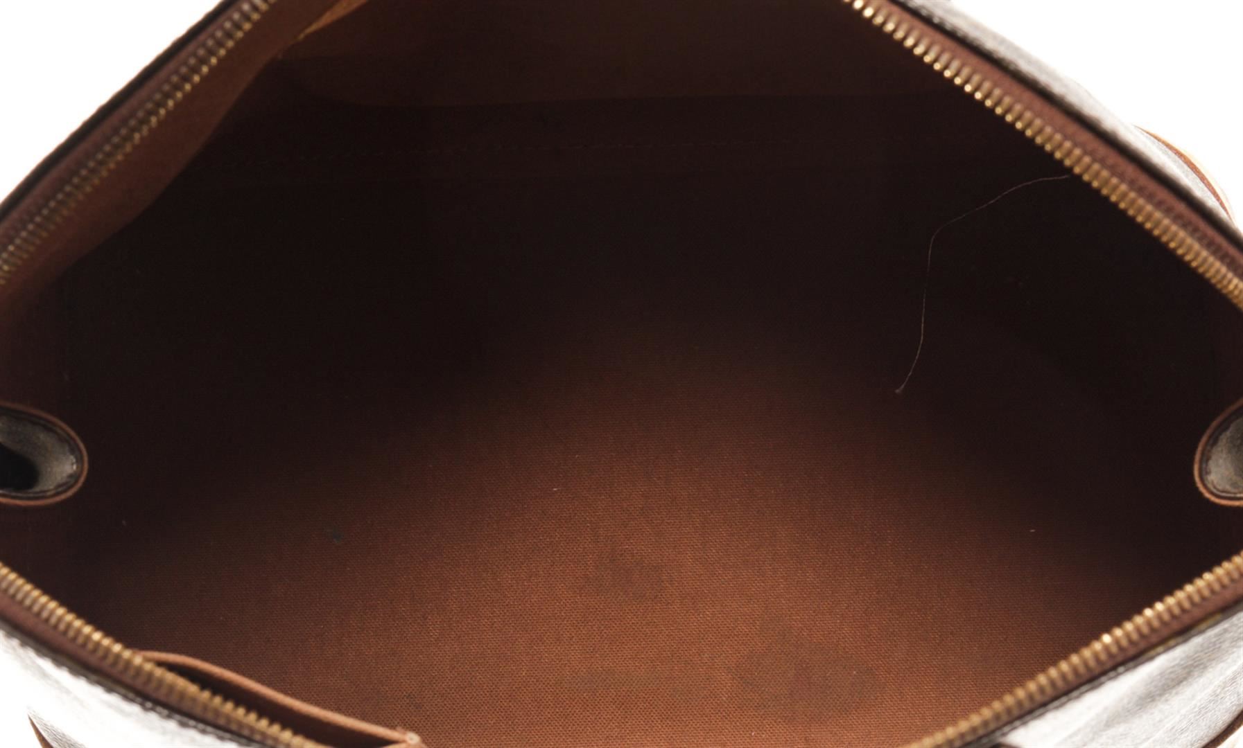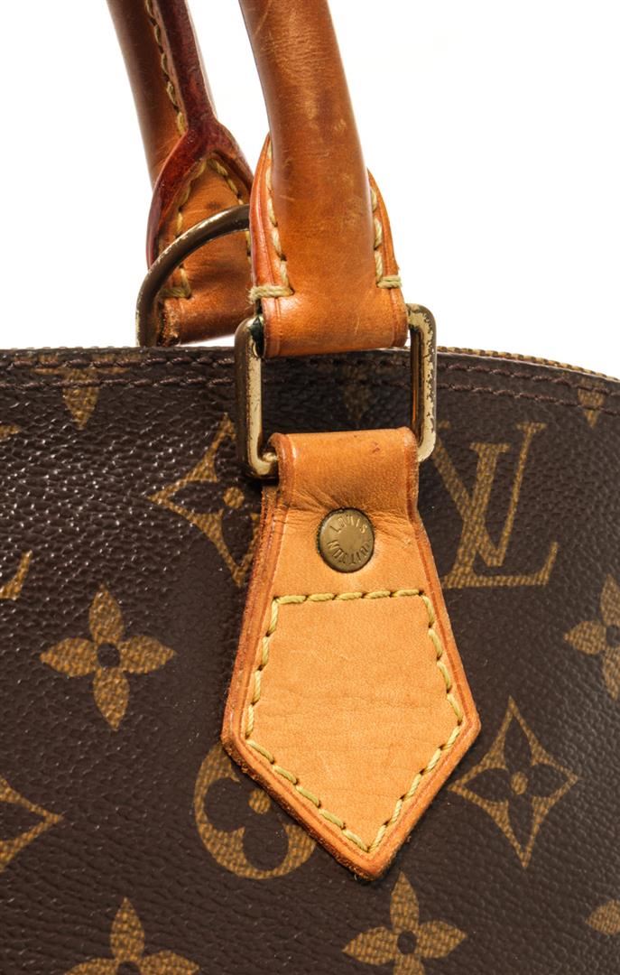 Louis Vuitton Brown Monogram Canvas and Leather Alma PM Bag. All available information is listed in the description and shown in the photos. louis vuitton brown monogram canvas and leather alma pm bag with constructed from monogram canvas and leather it displays dual handles at the top gold tone hardware and a padlock. the fabric lined interior of the bag is secured by a zipper closure at the top. Vachetta is worn, corner is stained, bottom is dirty, hardware is tarnished. Please refer to photos. Height: 25 cm Width: 16 cm Length: 31 cm / 9.84" x 6.29" x 12.20" Inches
