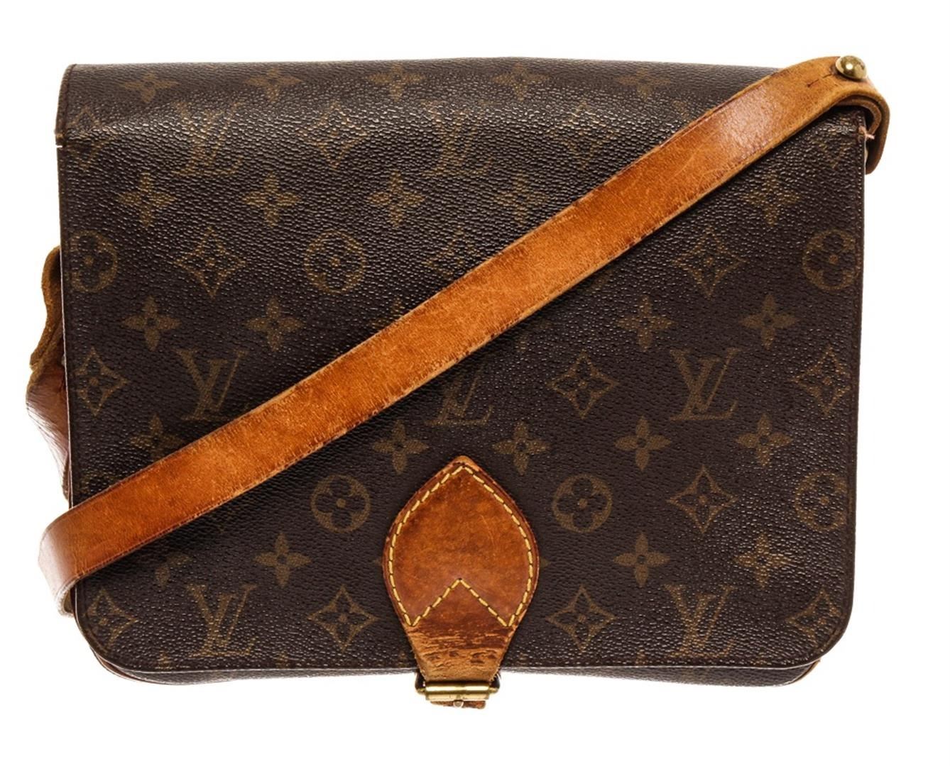 Louis Vuitton Brown Monogram Cartouchiere GM Messenger Bag. All available information is listed in the description and shown in the photos. Louis Vuitton Brown Monogram Cartouchiere GM Messenger Bag with brown printed, brass hardware, single adjustable shoulder strap, leather lining, buckle closure at front. Height: 9.25" Width: 10.25" Depth: 3", Shoulder Strap Drop Max: 21.5" / 23.49 x 26.03 x 7.62 Cm