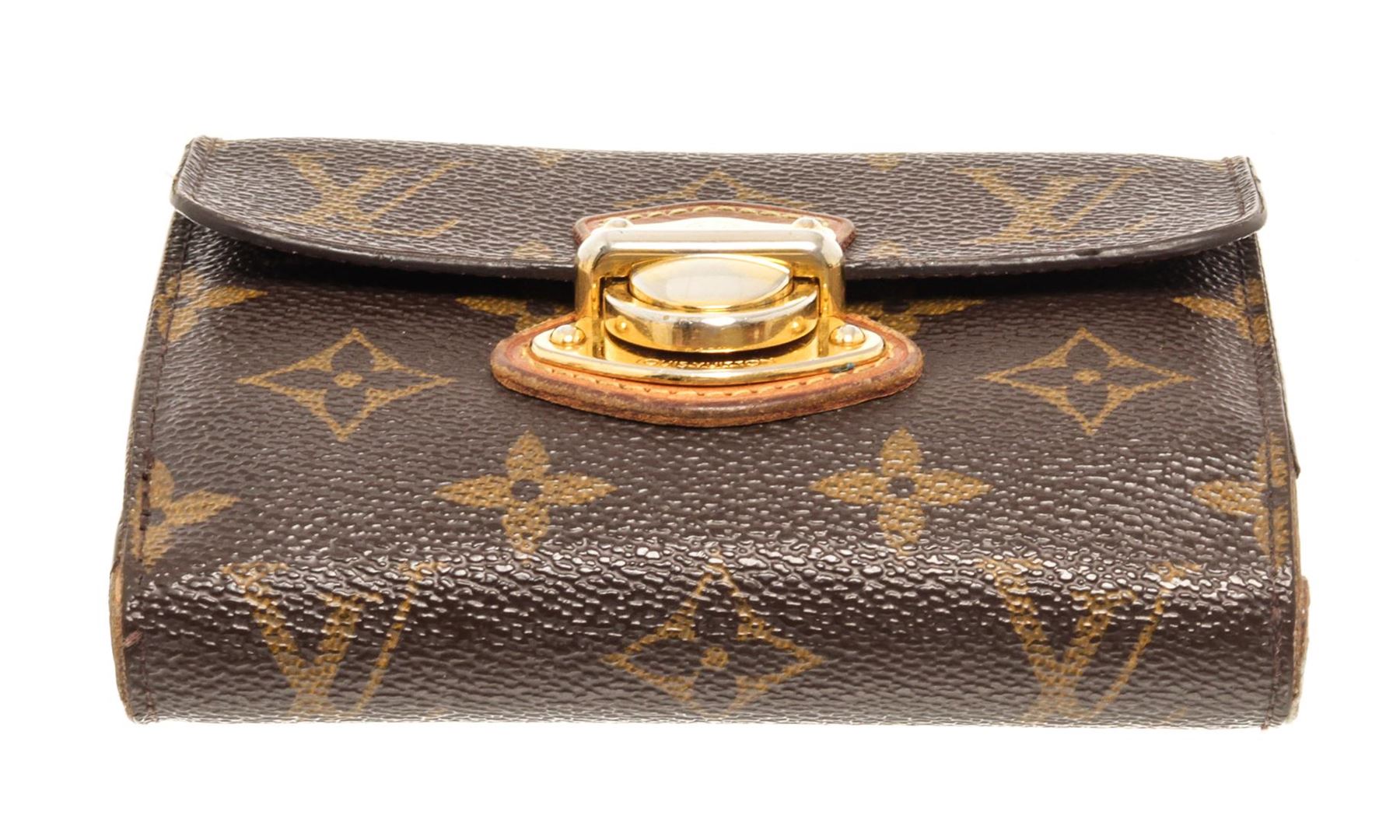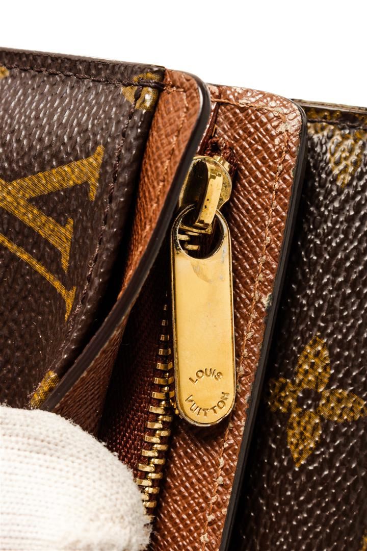 One Louis Vuitton Brown Monogram Koala Wallet. Item is sold AS-IS. All available information is listed in the description and shown in the photo. Louis Vuitton brown monogram Koala wallet with coated canvas exterior, brown leather lining, gold-tone hardware, trim brown vachetta leather, interior zip compartment, flap and push-lock closure, and multiple card slots. Interior is very worn. Please refer to photos.
