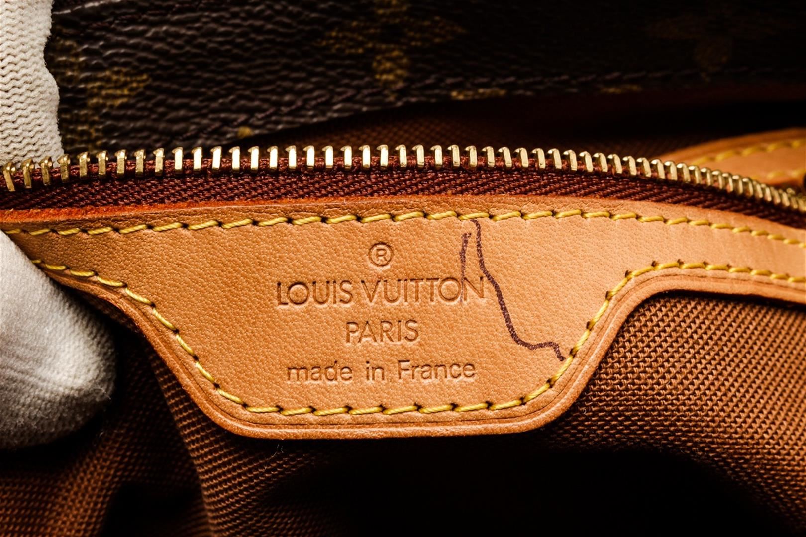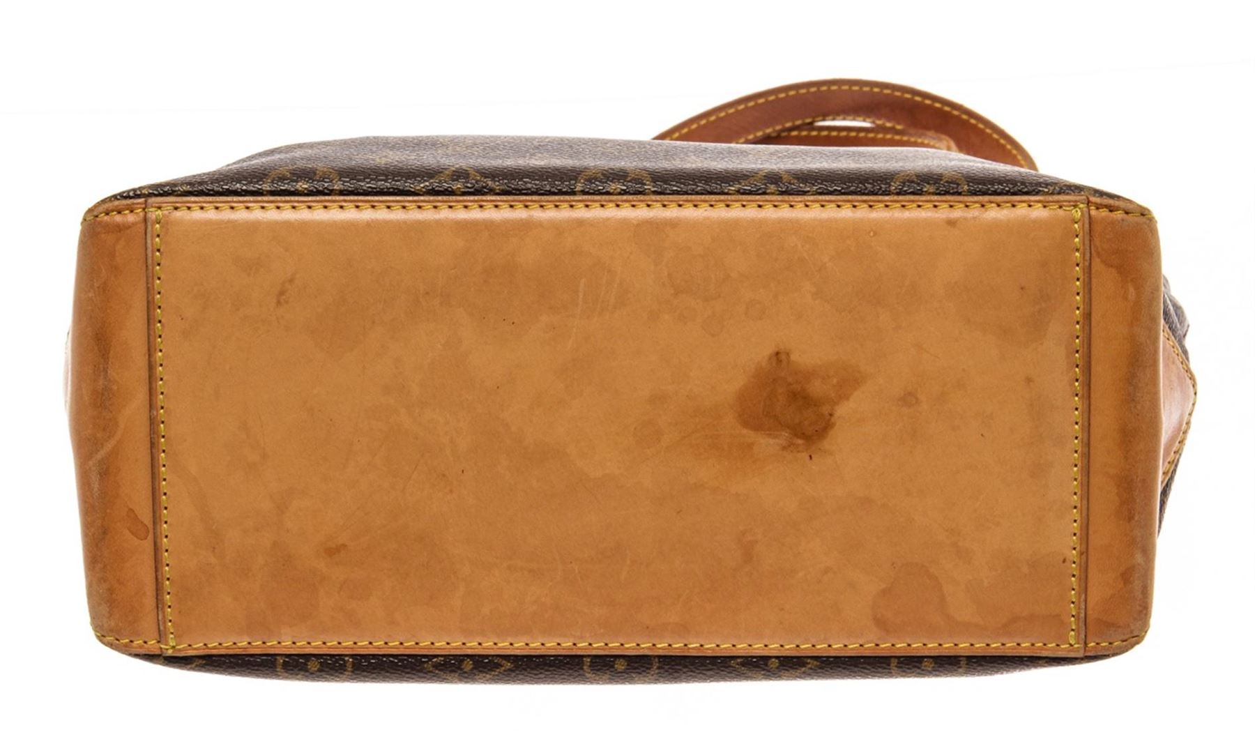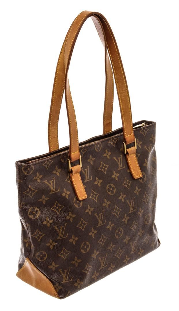 Louis Vuitton Brown Monogram Leather Cabas Piano Tote Bag. All available information is listed in the description and shown in the photos. louis vuitton brown monogram leather cabas piano tote bag with vintage, gold-tone hardware, leather trim, dual shoulder straps, leather trim embellishment, canvas lining & single interior pocket, zip closure at top, includes dust bag. Height: 9.5" Width: 11" Depth: 4.5", Shoulder Strap Drop: 9" / 24.13 x 27.94 x 11.43 Cm
