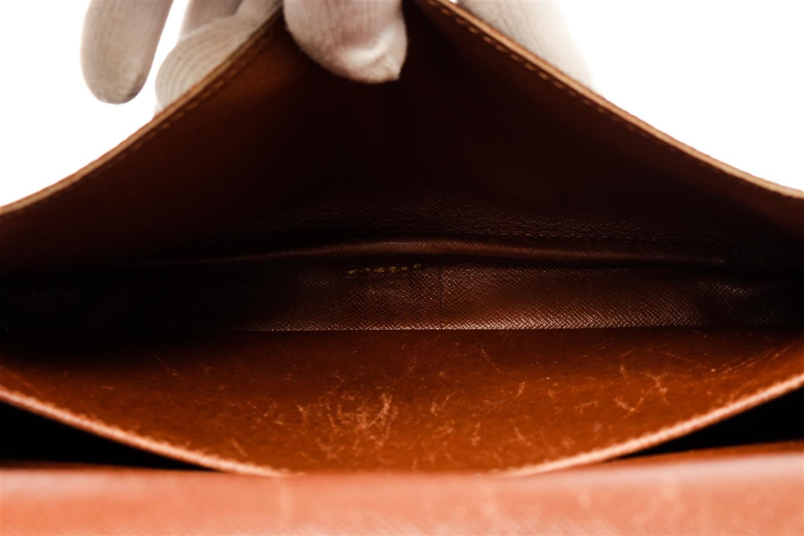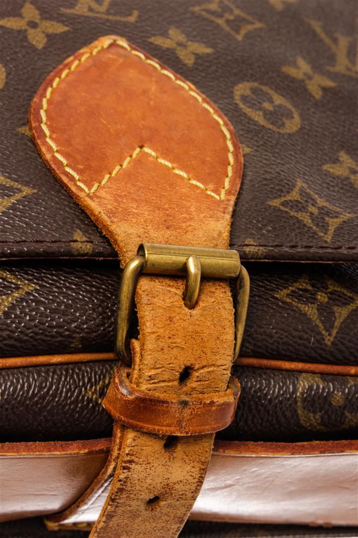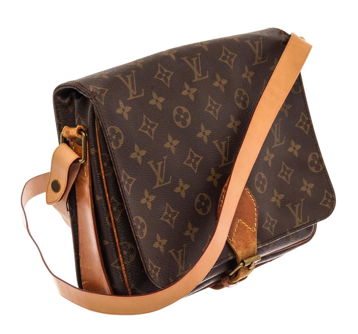 Louis Vuitton Brown Monogram Leather Cartouchiere GM Messenger Bag. All available information is listed in the description and shown in the photos. Louis Vuitton Brown Monogram Leather Cartouchiere GM Messenger Bag with brown coated canvas, monogram pattern, brass hardware, leather trim, single adjustable shoulder strap, leather trim embellishment, leather lining, buckle closure at front. Height: 9.5" Width: 9.25" Depth: 3", Shoulder Strap Drop : 19.25-22.5" / 24.13 x 23.49 x 7.62 Cm