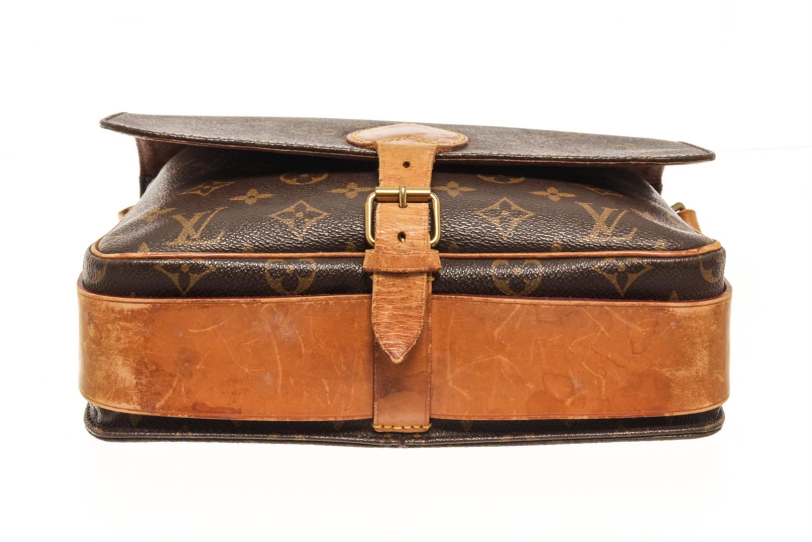 Louis Vuitton Brown Monogram Leather Cartouchiere GM Shoulder Bag. All available information is listed in the description and shown in the photos. louis vuitton brown monogram leather cartouchiere gm shoulder bag. Height: 7.5" Width: 3" Depth: 9.75", Handle Drop: 12.5" / 19.05 x 7.62 x 24.77 Cm