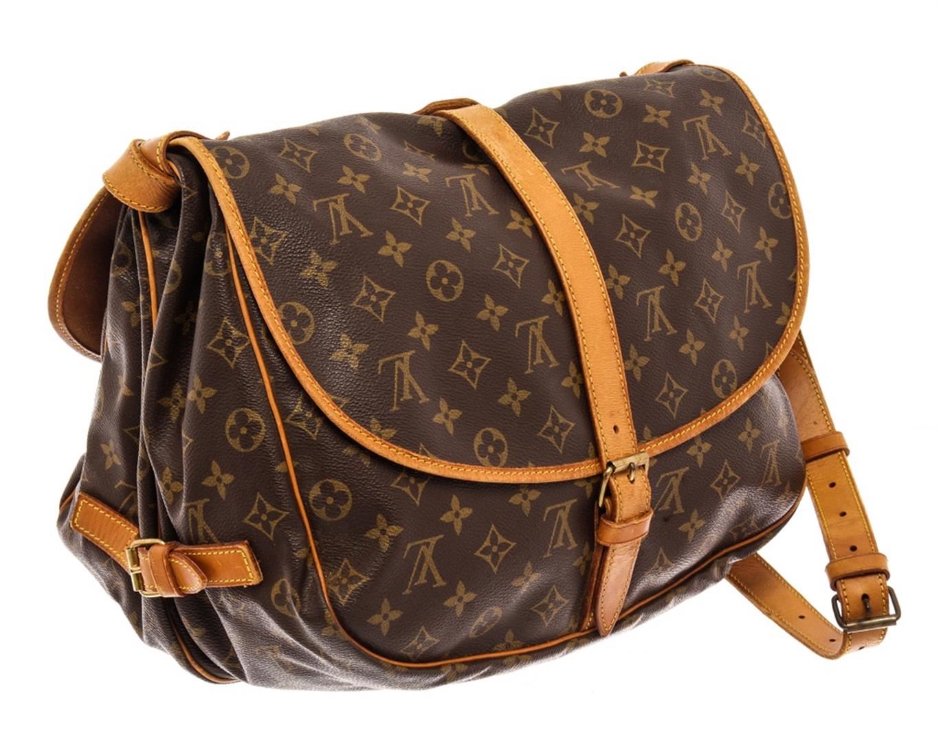 Louis Vuitton Brown Monogram Leather Saumur 35 Messenger Bag. All available information is listed in the description and shown in the photos. Louis Vuitton Brown Monogram Leather Saumur 35 Messenger Bag with brass hardware, leather trim, single adjustable shoulder strap, canvas lining & three interior pockets, buckle closure at front. Height: 10" Width: 11.5" Depth: 2", Shoulder Strap Drop: 18.5-23" / 25.4 x 29.21 x 5.08 Cm