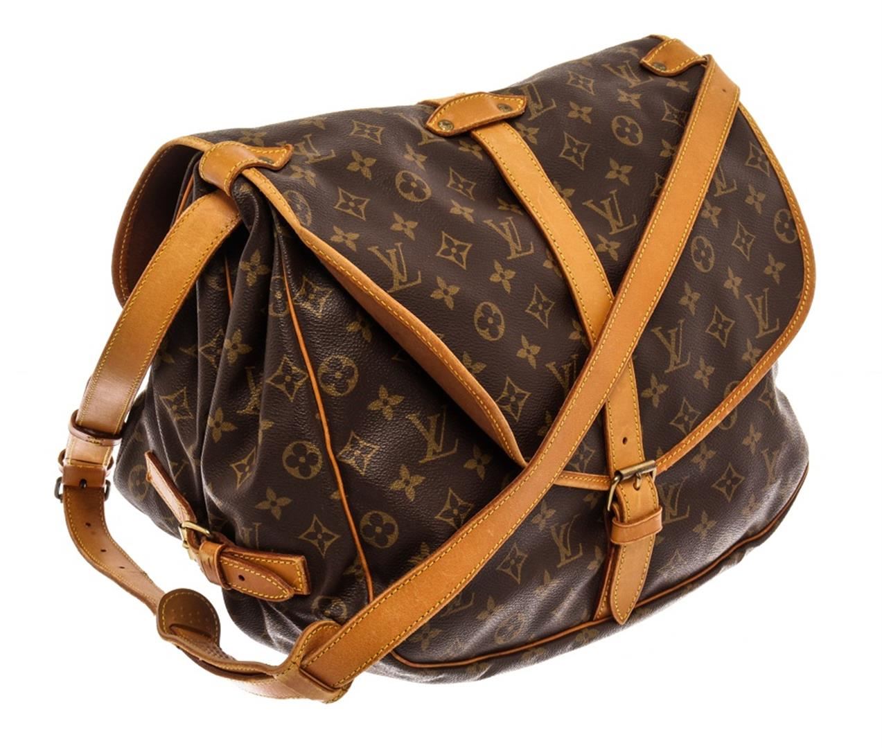 Louis Vuitton Brown Monogram Leather Saumur 35 Messenger Bag. All available information is listed in the description and shown in the photos. Louis Vuitton Brown Monogram Leather Saumur 35 Messenger Bag with brass hardware, leather trim, single adjustable shoulder strap, canvas lining & three interior pockets, buckle closure at front. Height: 10" Width: 11.5" Depth: 2", Shoulder Strap Drop: 18.5-23" / 25.4 x 29.21 x 5.08 Cm