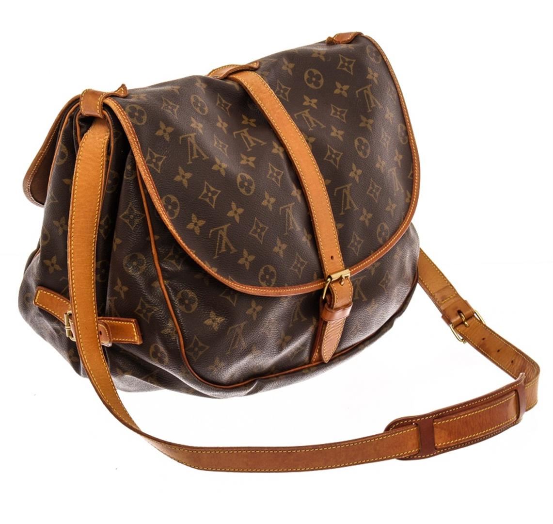 Louis Vuitton Brown Monogram Leather Saumur 35 Shoulder Bag. All available information is listed in the description and shown in the photos. Louis Vuitton Brown Monogram Leather Saumur 35 Shoulder Bag with brass hardware, leather trim, single adjustable shoulder strap, canvas lining & three interior pockets, buckle closure at front. Height: 10" Width: 11.5" Depth: 2", Shoulder Strap Drop: 18.5-23" / 25.4 x 29.21 x 5.08 Cm