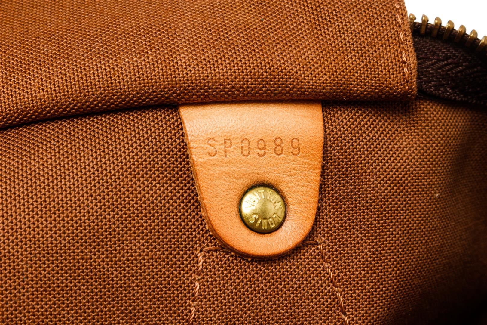Louis Vuitton Brown Monogram Leather Speedy 30 Satchel Bag. All available information is listed in the description and shown in the photos. Louis Vuitton Brown Monogram Leather Speedy 30 Satchel Bag with brown & neutrals, brass hardware, leather trim, rolled handles, leather trim embellishment, grosgrain lining & single interior pocket, zip closure at top. Height: 8.25" Width: 11.75" Depth: 6.75", Handle Drop: 3" / 20.95 x 29.84 x 17.14 Cm