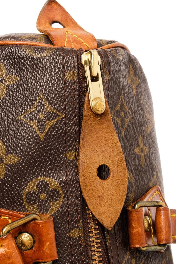 Louis Vuitton Brown Monogram Leather Speedy 30 Satchel Bag. All available information is listed in the description and shown in the photos. Louis Vuitton Brown Monogram Leather Speedy 30 Satchel Bag with monogram pattern, brass hardware, leather trim, rolled handles, leather trim embellishment, canvas lining & single interior pocket, zip closure at top. Height: 8.25" Width: 12.75" Depth: 6.75", Handle Drop: 3.5" / 20.95 x 32.38 x 17.14 Cm